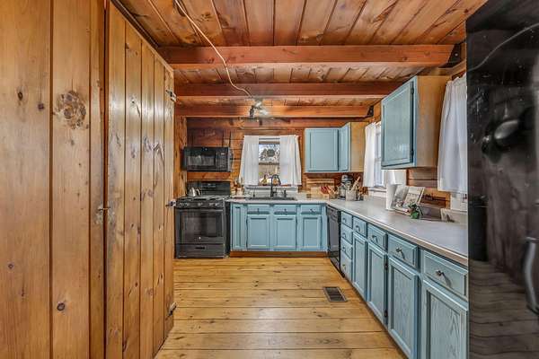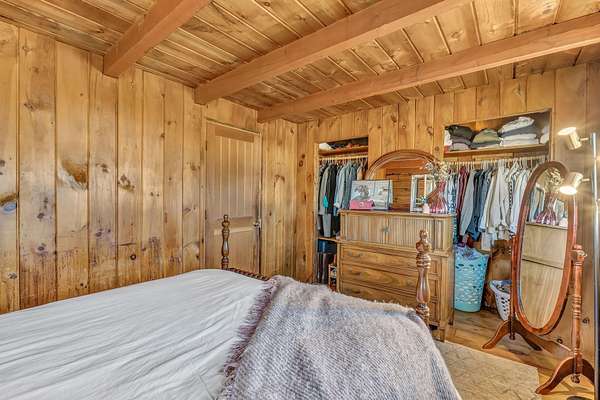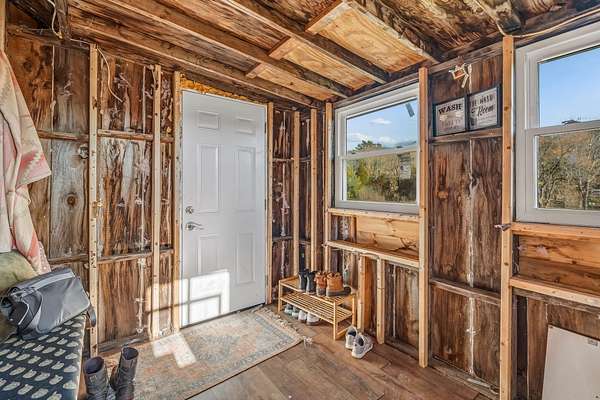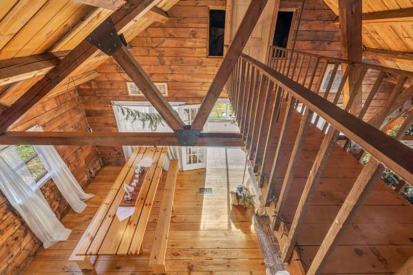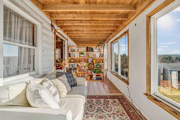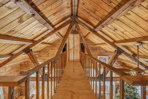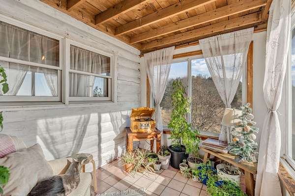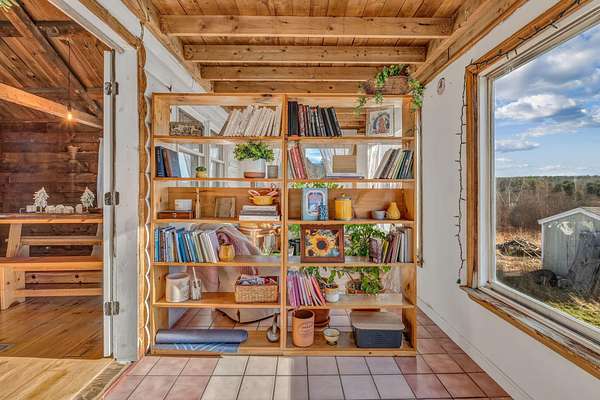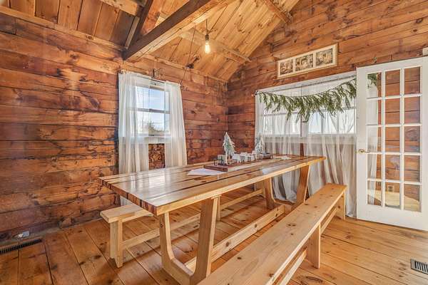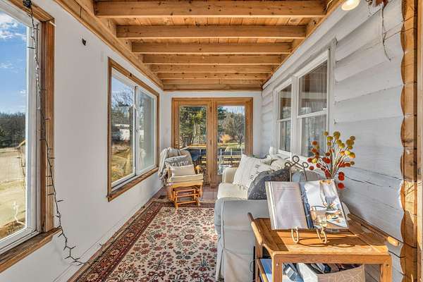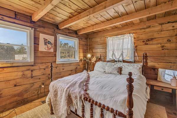 Welcome to this charming log cabin set on 7.8A+- acres of open fields at the end of a quiet lane in Waldoboro. Abutting conserved land, the property offers privacy, pastoral scenery, and a true retreat-like feel. A picturesque private pond adds to the setting, creating a peaceful backdrop for daily living. This home has one-of-a-kind character with the opportunity for one-floor living and the option to create a private guest space on the second level. The warm two-bedroom, one-bath layout features classic log cabin details, cathedral ceilings, and a gorgeous stone fireplace that anchors the living room. Open beams continue into the dining room, adding cohesion and architectural charm. An all-season sun porch expands the living space and offers a bright spot to enjoy morning coffee, watch wildlife by the pond, or relax year-round. The mudroom offers valuable flex spaceaEUR"with the option to insulate and finish for year-round use. A first-floor washer/dryer hookup provides the opportunity to relocate laundry to the main level for added convenience. Upstairs, a generous storage room offers potential for an additional bedroom or guest suite with appropriate permits and improvementsaEUR"an opportunity to expand the livable footprint to meet your needs. Outdoors, the acreage invites possibilityaEUR"gardens, animals, trails, or a homestead vision. The blend of open land and natural features provides room to grow and enjoy the outdoors in every season. Located minutes from Waldoboro Village, Route 1, and Midcoast amenities, this property offers both seclusion and convenience. Ideal as a year-round residence, seasonal getaway, or homestead opportunityaEUR"44 Staley Lane blends charm, land, and potential.