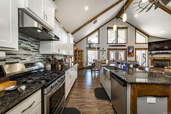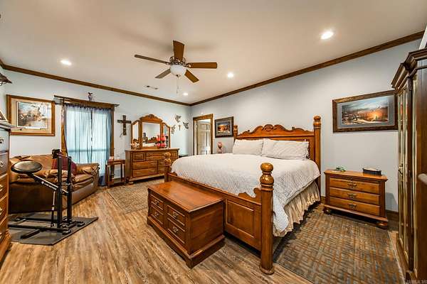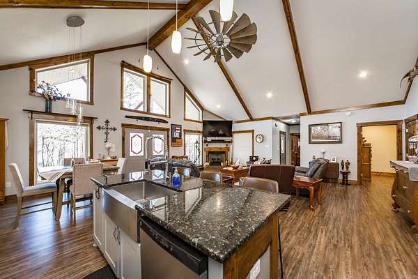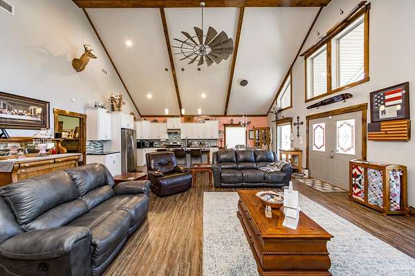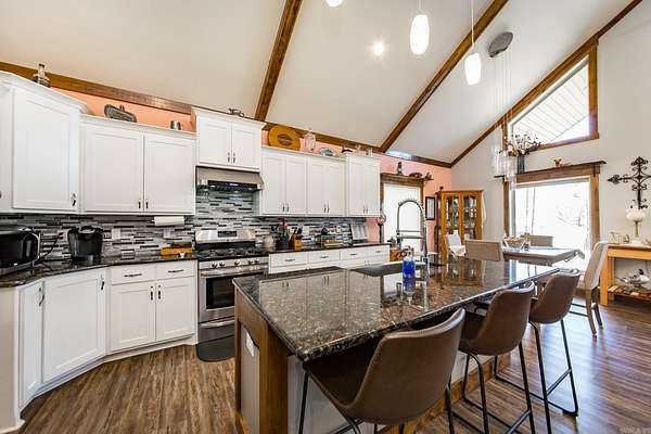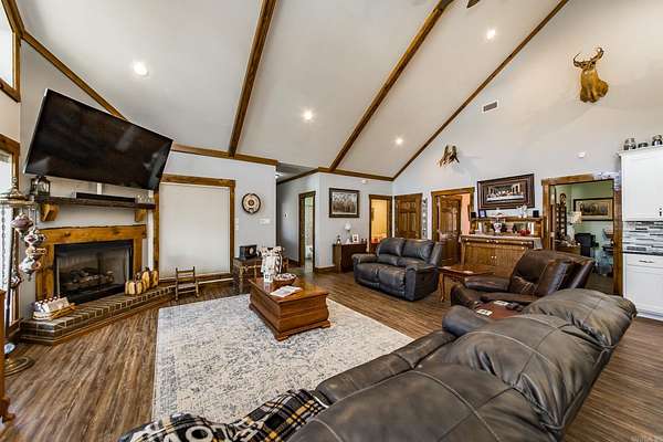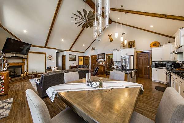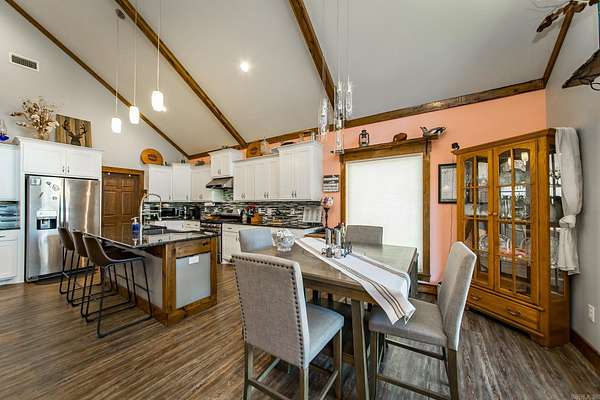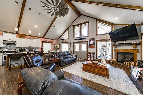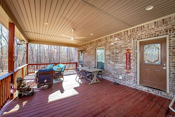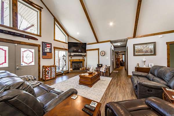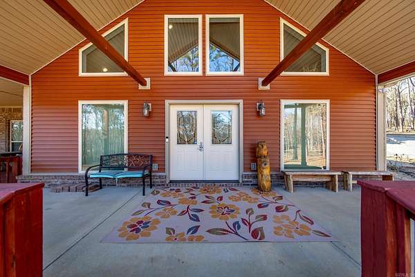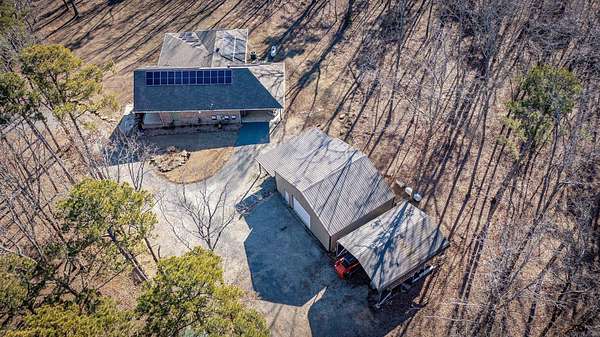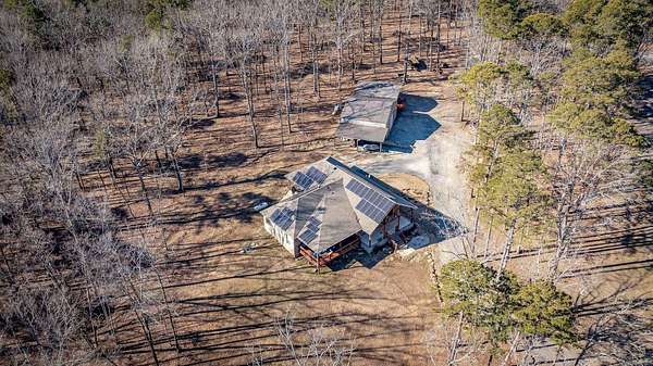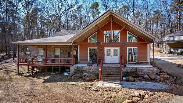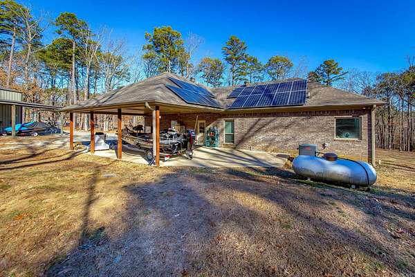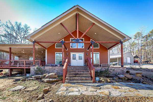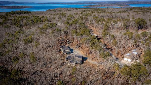 MOTIVATED SELLER! Discover your dream retreat on the picturesque shores of Greers Ferry Lake. This stunning lakefront property spans 2.8 acres +/- offering the ideal blend of privacy & space, with direct access to a convenient boat ramp. Nestled next to the renowned Tannenbaum Golf Course, spend your days perfecting your swing under the sun & your evenings basking in the vibrant hues of lakefront sunsets, or catching a wave on your boat. The expansive covered patio sets the scene for unforgettable gatherings while the serene mornings provide the perfect backdrop for a quiet coffee ritual as you watch the lake's still waters. Inside, the open & vaulted living/dining area is bathed in natural light, courtesy of a striking wall of windows that offer uninterrupted views of the lake. This property is as efficient as it is beautiful, with solar panels providing significant energy savings. Custom trim was harvested from local trees on the land. Storage is abundant, with two carports & a spacious 30x36 insulated shop building, ideal for those cherished lake toys. The shop is roughed in for plumbing offering the opportunity for expansion to add a guest suite. Your lakeside sanctuary awaits.