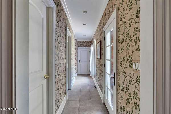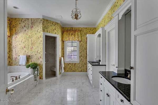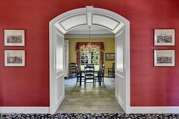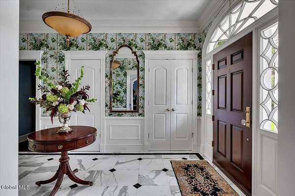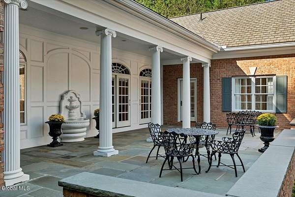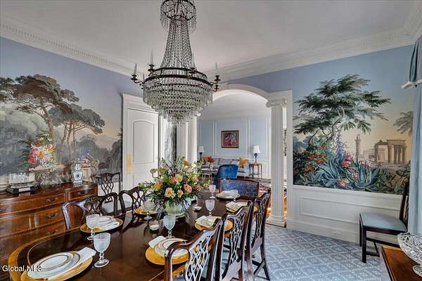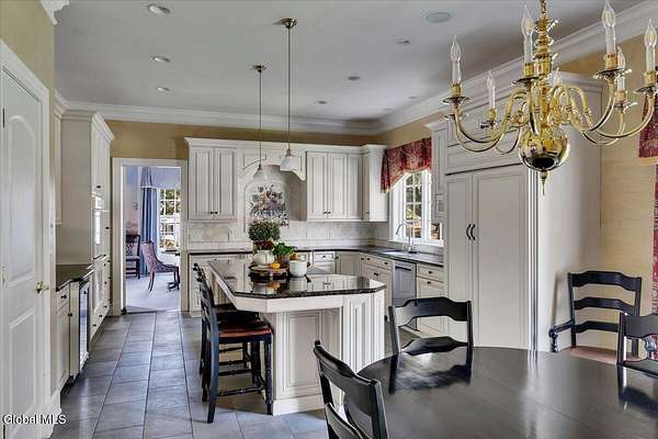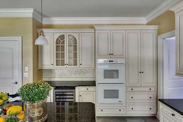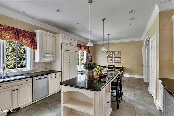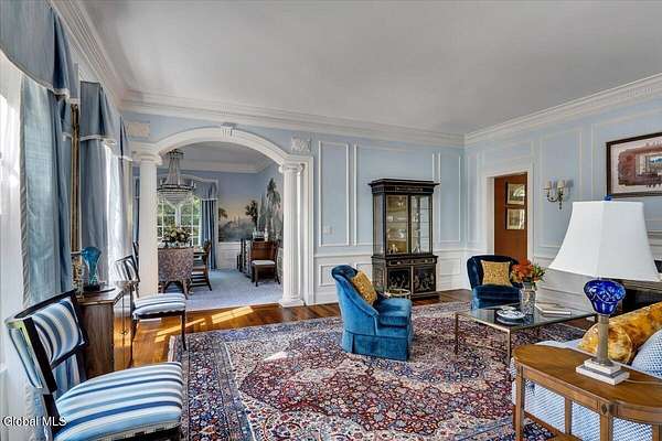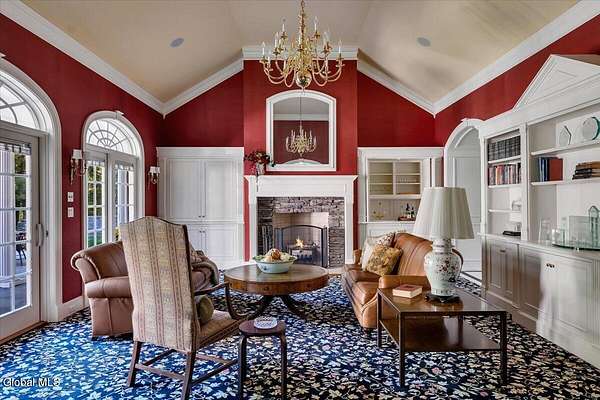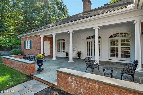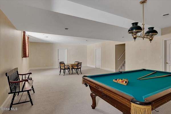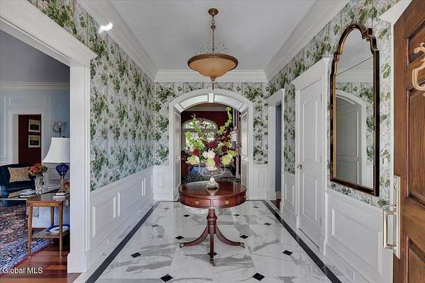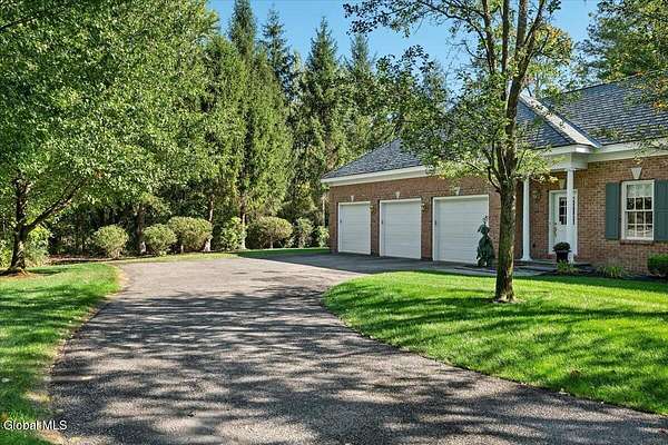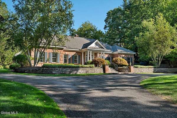 This architecturally stunning, one-level luxury residence combines timeless sophistication with the finest craftsmanship and finishes throughout. An extremely rare opportunity for the most discerning buyer. Constructed by Loudonville's premier builder with remarkable attention to detail. The home's appeal begins with a sweeping circular drive that leads to a dramatic front entrance. Bluestone steps ascend to a grand portico that welcomes you inside. Center foyer with a sparkling marble floor. Intricate moldings, and designer features throughout set an impressive tone. The formal living and dining rooms are designed with entertaining in mind. Zuber wallpaper. The gourmet kitchen is a chef's dream-anchored by a spacious island and equipped with Wolf, Dacor, Bosch, Summit, and Sub-Zero appliances. The adjoining great room captivates with a soaring cathedral ceiling, grand fireplace, custom built-ins, wet bar, and sliding doors that open to a private covered terrace. It's the heart of the home and perfect for gatherings large or small. Private hall with Venetian plaster walls leads to the bedroom and study wing. The owner's study or den provides an ideal space for work or relaxation. With an adjoining walk-in closet/dressing room and full bath, this flexible area could also serve as a 4th bedroom. Guest suite with an ensuite bath ensures comfort and privacy. Magnificent primary suite is a true retreat, featuring a sumptuous spa-inspired bath and an expansive dressing room. Separate guest room with ensuite bath offers perfect accommodations for an au pair. Convenient side entrance with ample storage and a laundry room. Lower-level game/recreation room with garden windows and new carpeting, plus unfinished space. Heated 3 car side-load garage. Zoned heating and cooling. Set on a beautifully landscaped private 1.7-acre lot with large stone terrace, this extraordinary home embodies the best of Loudonville luxury living.