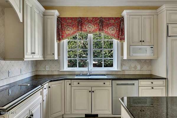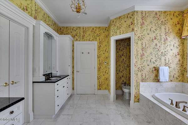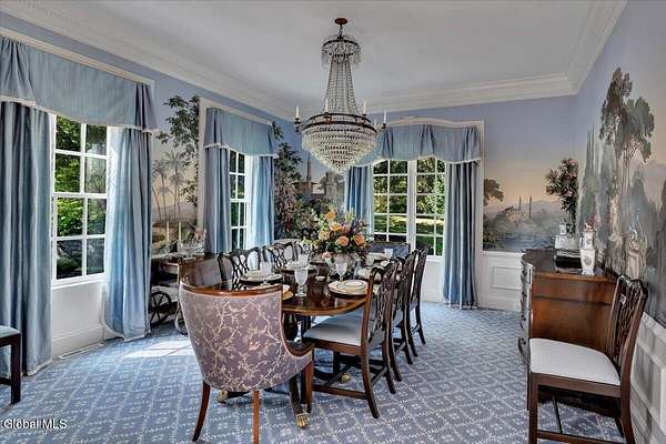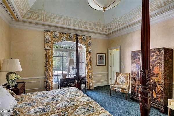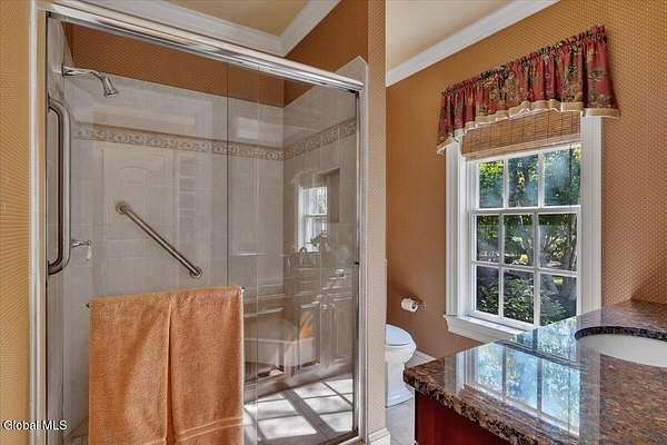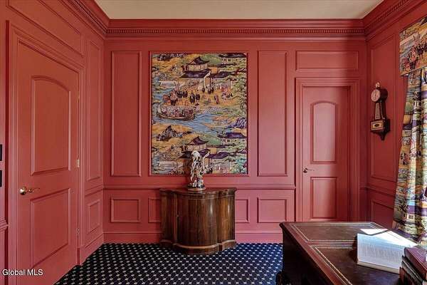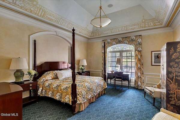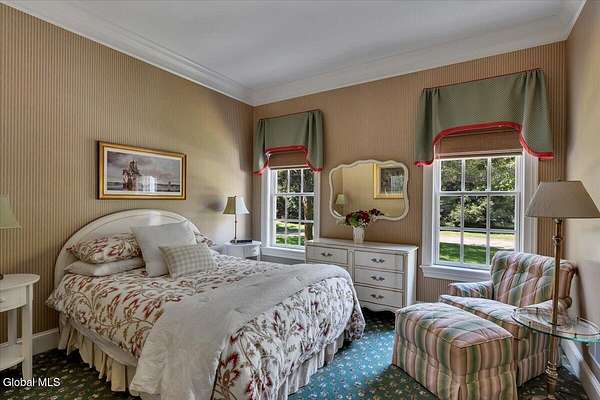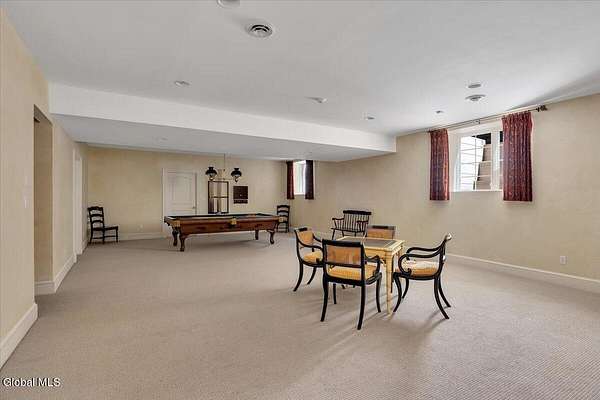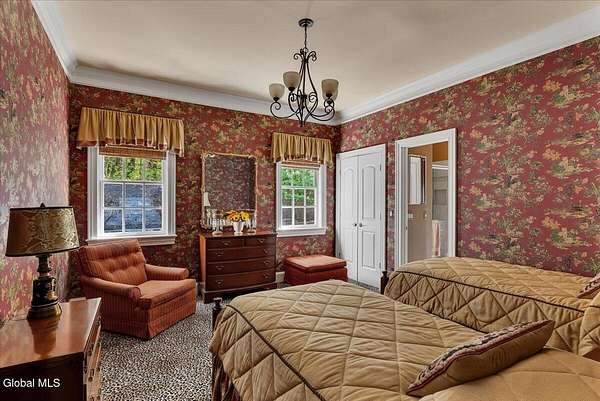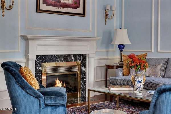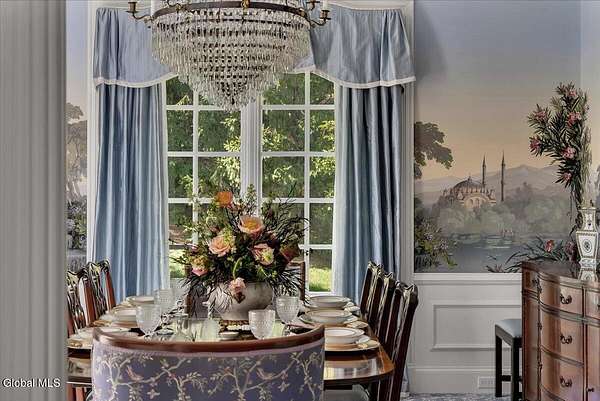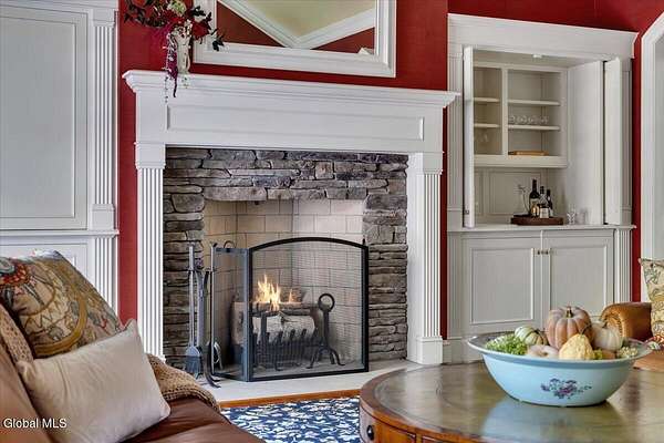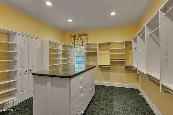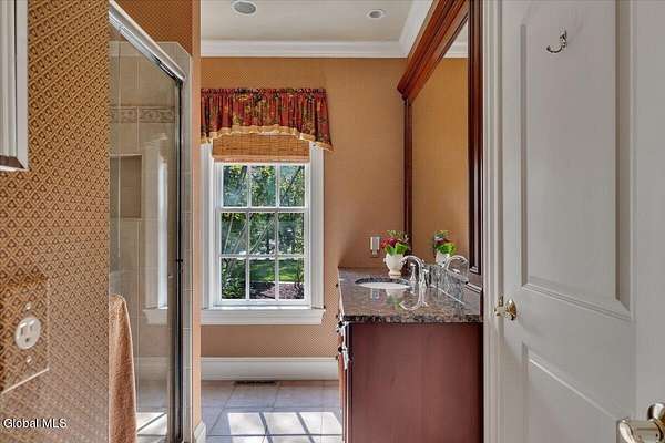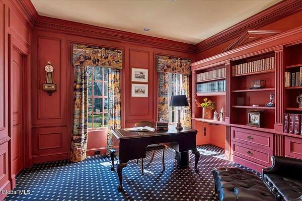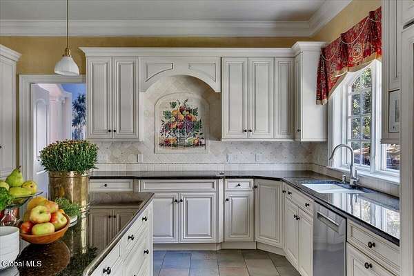 This architecturally stunning, one-level luxury residence combines timeless sophistication with the finest craftsmanship and finishes throughout. An extremely rare opportunity for the most discerning buyer. Constructed by Loudonville's premier builder with remarkable attention to detail. The home's appeal begins with a sweeping circular drive that leads to a dramatic front entrance. Bluestone steps ascend to a grand portico that welcomes you inside. Center foyer with a sparkling marble floor. Intricate moldings, and designer features throughout set an impressive tone. The formal living and dining rooms are designed with entertaining in mind. Zuber wallpaper. The gourmet kitchen is a chef's dream-anchored by a spacious island and equipped with Wolf, Dacor, Bosch, Summit, and Sub-Zero appliances. The adjoining great room captivates with a soaring cathedral ceiling, grand fireplace, custom built-ins, wet bar, and sliding doors that open to a private covered terrace. It's the heart of the home and perfect for gatherings large or small. Private hall with Venetian plaster walls leads to the bedroom and study wing. The owner's study or den provides an ideal space for work or relaxation. With an adjoining walk-in closet/dressing room and full bath, this flexible area could also serve as a 4th bedroom. Guest suite with an ensuite bath ensures comfort and privacy. Magnificent primary suite is a true retreat, featuring a sumptuous spa-inspired bath and an expansive dressing room. Separate guest room with ensuite bath offers perfect accommodations for an au pair. Convenient side entrance with ample storage and a laundry room. Lower-level game/recreation room with garden windows and new carpeting, plus unfinished space. Heated 3 car side-load garage. Zoned heating and cooling. Set on a beautifully landscaped private 1.7-acre lot with large stone terrace, this extraordinary home embodies the best of Loudonville luxury living.