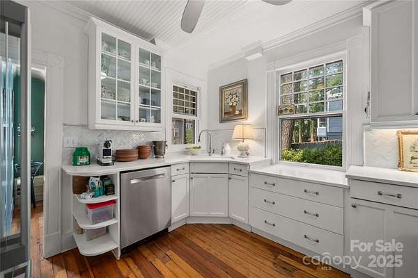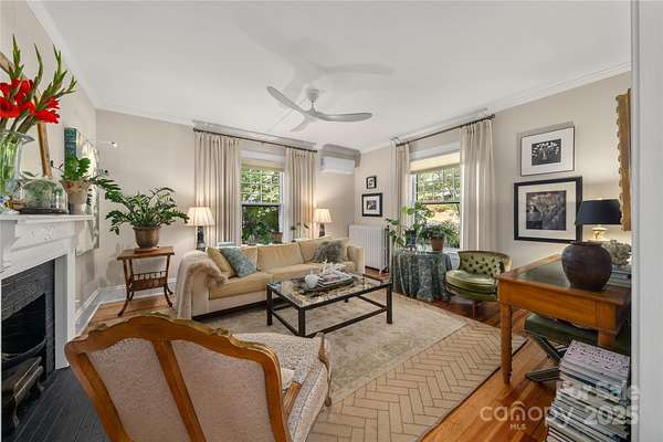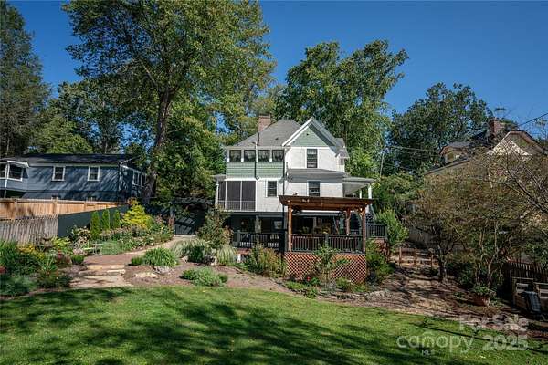 Beautiful Richard Sharp Smith-designed home on an oversized Montford lot, thoughtfully updated while preserving historic character. Features include new kitchen appliances, mini-splits, custom lighting, a renovated primary suite with walk-in shower, crown molding, and more-too many upgrades to list. Lower-level guest suite offers French doors, beverage area, and flexible living space. Outside, enjoy an impeccably designed garden-featured on the 2025 Montford Garden Tour-plus a new deck, privacy fence, and restored exterior. Located in Montford, one of Asheville's most sought-after neighborhoods, known for its inclusivity, walkability, and wonderful neighbors.
