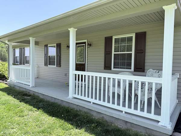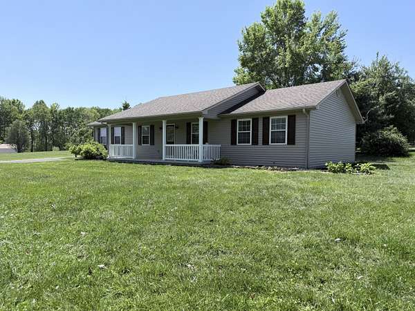 Peaceful country living awaits with this well-maintained 3 bedroom, 2 full bathroom home situated on 1.62 acres. Built in 2003, this property offers a quiet rural setting with a beautiful mix of mature trees, creating a private and inviting atmosphere. The home features real hardwood flooring in the living area with comfortable carpet in the bedrooms, along with a spacious kitchen complete with all appliances included. A large 20x28 ft attached garage provides plenty of room for vehicles and storage. Step outside to enjoy the covered front porch, the perfect place to relax and take in the scenic front yard filled with a variety of trees including silver maple, river birch, pine, magnolia, as well as snowball and crepe myrtle bushes. The back deck overlooks a fenced-in area ideal for pets, gardening, or outdoor play, and a storage shed remains with the property for added convenience. With space, privacy, and a peaceful setting, this solid home offers the best of country living-don't miss your opportunity to make it yours!