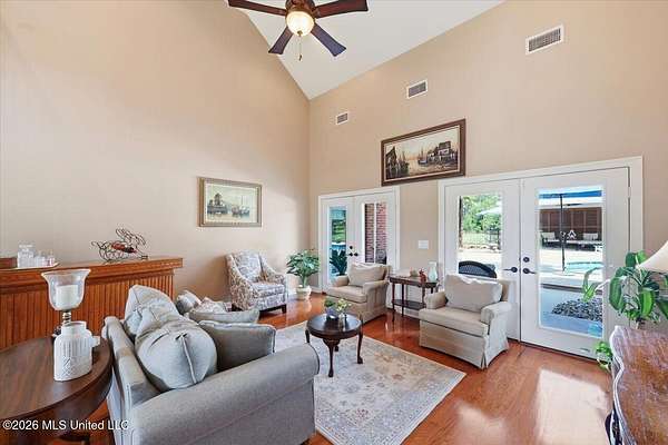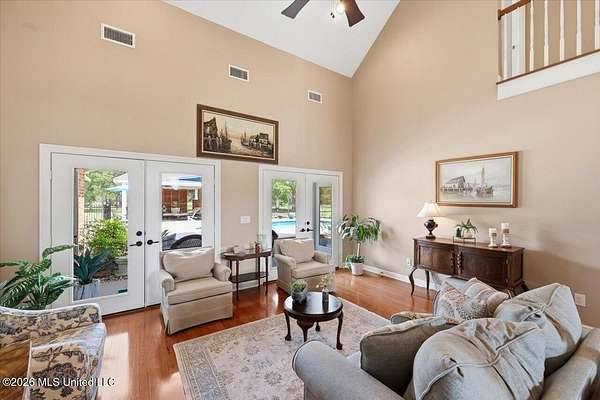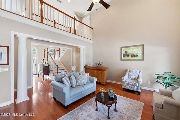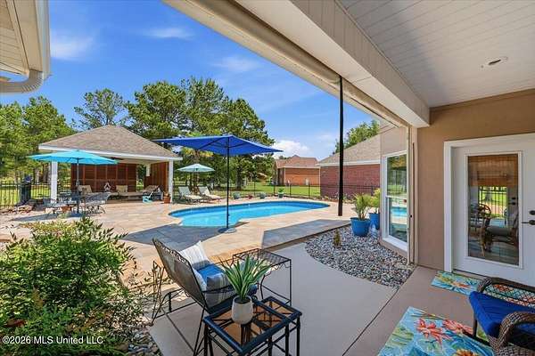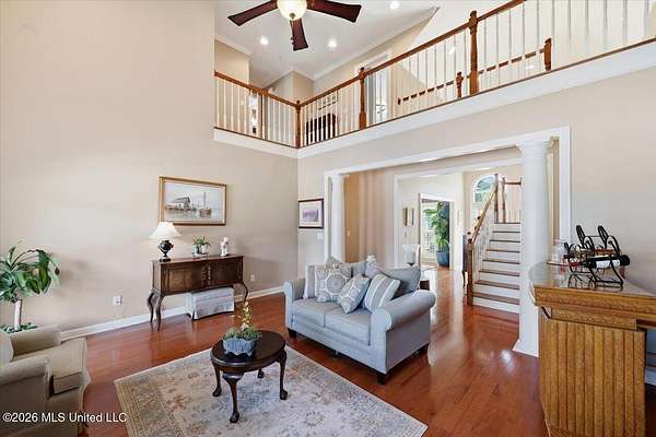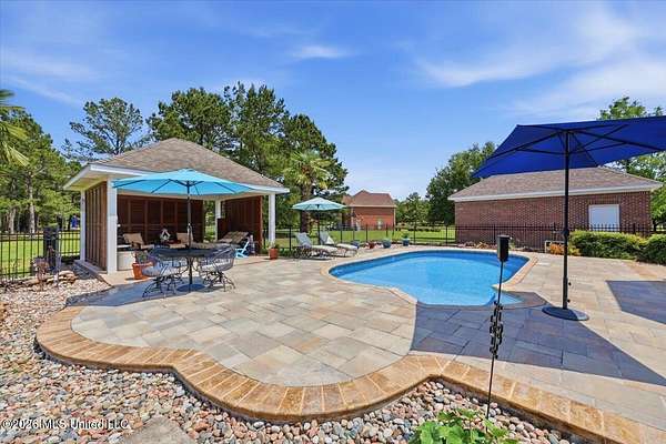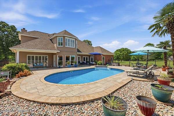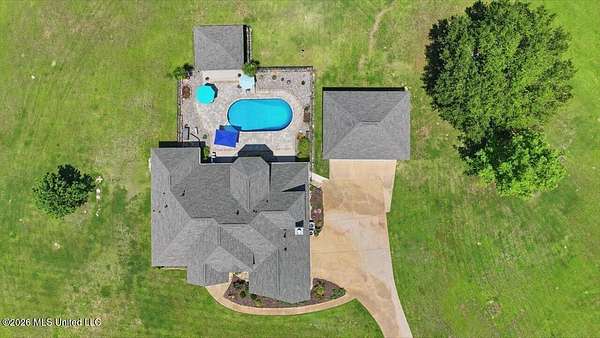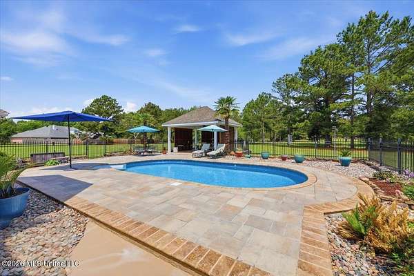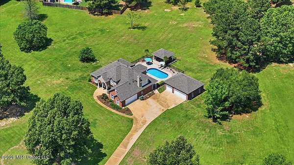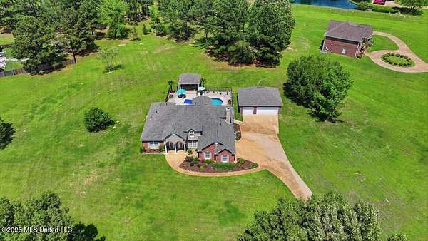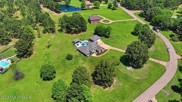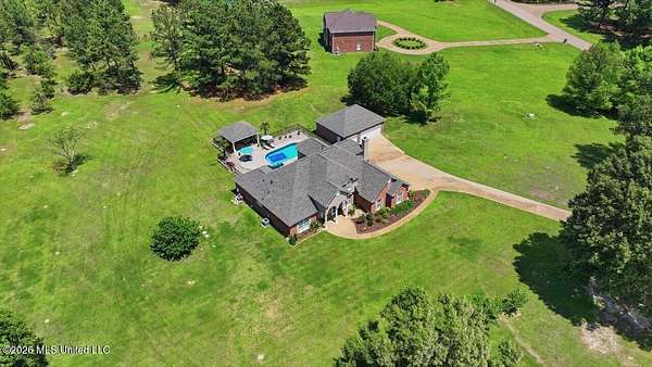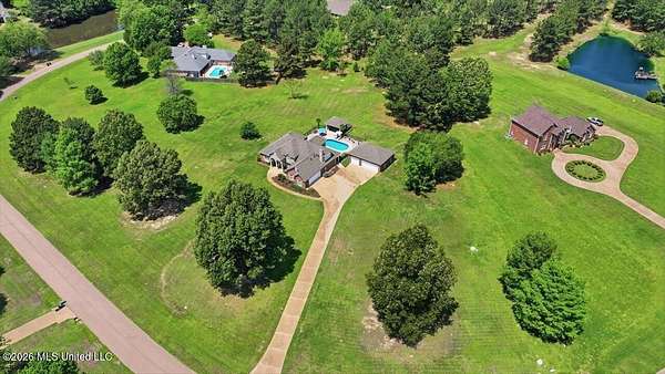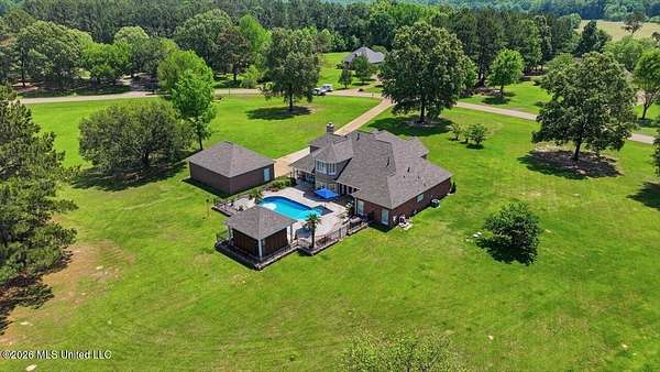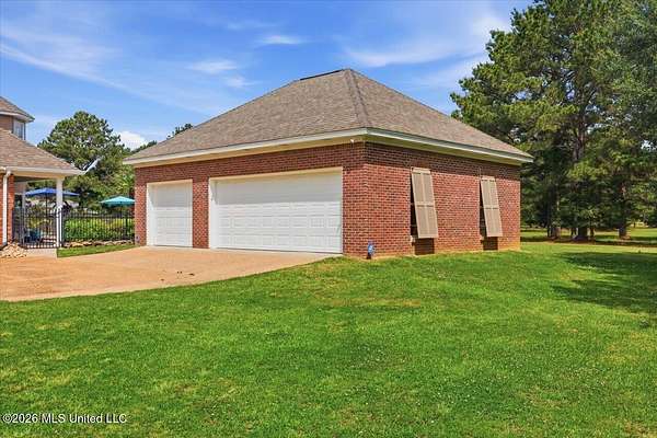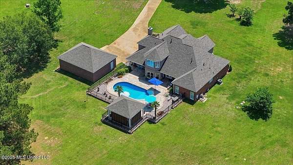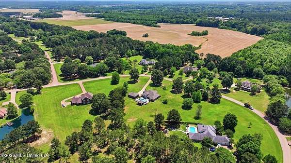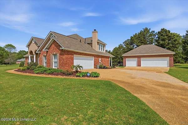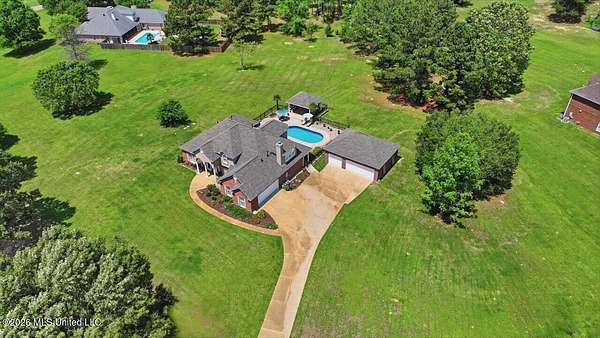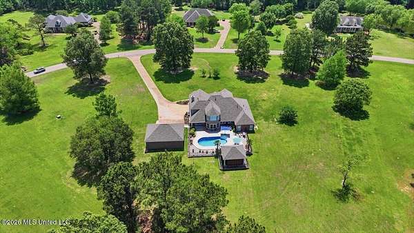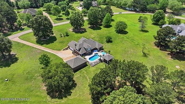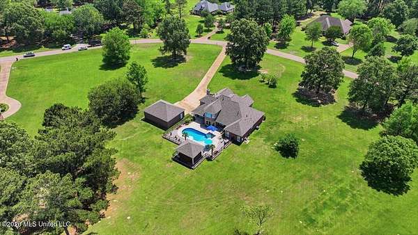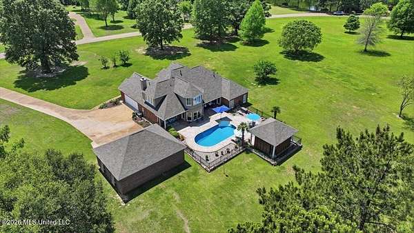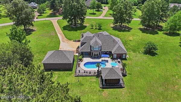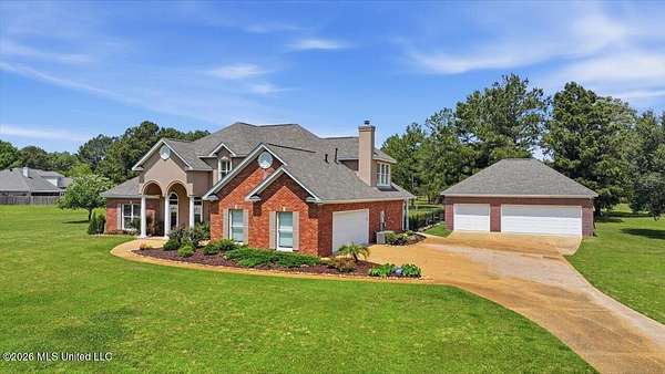 Welcome to this stunning custom-built home nestled on 2.8 beautifully landscaped acres in the prestigious Cherry Hill Plantation subdivision in Madison, MS-perfectly designed with peaceful living in mind. This spacious 4-bedroom, 3.5-bath home offers comfort, functionality, and room to grow both inside and out. The thoughtfully designed floor plan features a private primary suite on the main level, creating a peaceful retreat, while three additional bedrooms are located upstairs. The upstairs layout is connected by a charming catwalk overlooking the main living area-adding both character and a fun, open feel to the home. With two large living rooms and a cozy keeping room just off the large kitchen, there's plenty of space for movie nights, play areas, or hosting gatherings. The kitchen serves as the heart of the home, perfect for busy mornings and shared meals. Step outside and you'll find a backyard built for making memories. The home features a resort-style pool and cabana that creates a vacation-like setting. The expansive back porch, complete with an adjustable awning, offers shaded outdoor living space ideal for cookouts or unwinding in the evenings. The property also features an attached 2-car garage plus a detached 3-car garage/workshop-perfect for storage, hobbies, or extra space for recreational gear. Located in the highly regarded Madison County School District, this home combines luxury living with everyday practicality. Come see how this exceptional property can be the perfect place for you to call home.