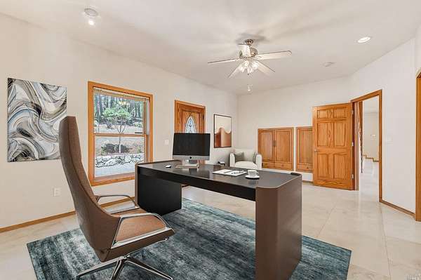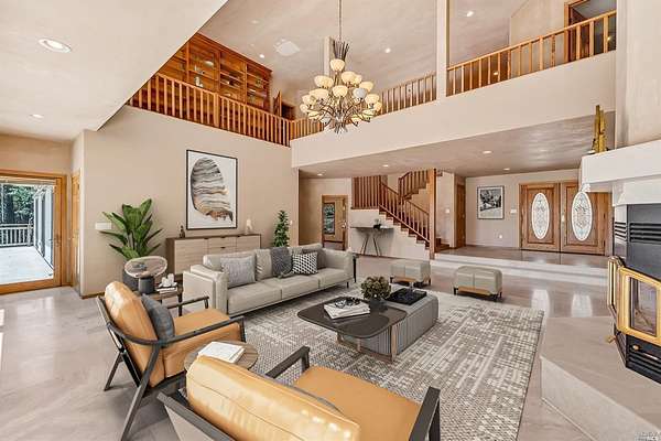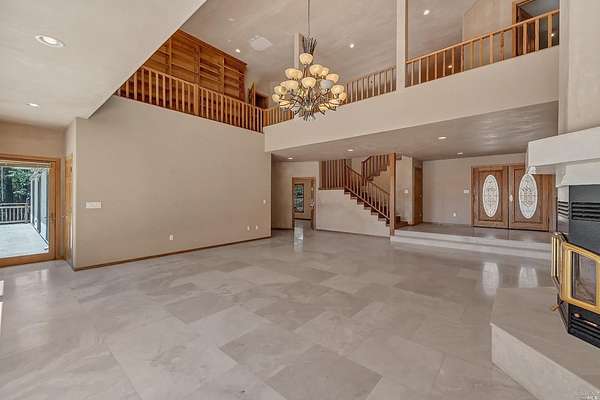 Howell Mountain Estate | 40 Acres | Panoramic Valley Views Perched on 40 private acres within the prestigious Howell Mountain AVA, this remarkable estate offers panoramic, unobstructed 180‑degree views spanning St. Helena, surrounding vineyards, and the Napa Valley floor. Completely private and positioned at the end of Cold Springs Road, the property delivers exceptional seclusion paired with awe‑inspiring vistas. The modern chteau‑style residence features six bedrooms, complemented by two additional guest or in‑law suites located on the fourth level, ideal for extended family, guests, or flexible living arrangements. The home's dramatic two‑story living room is highlighted by soaring ceilings and a wood‑burning fireplace, seamlessly opening onto an expansive deck designed to capture the sweeping valley views. The main level offers a thoughtfully designed flow, including a gourmet kitchen with walk‑in pantry, formal dining room, and inviting family roomperfect for both entertaining and everyday living. Additional amenities include a four‑car garage, dedicated workshop room, and potential wine cellar, offering abundant storage and customization opportunities. This rare Howell Mountain offering combines privacy, scale, architectural presence, and world‑class views, creating an exceptional Napa Valley retreat.