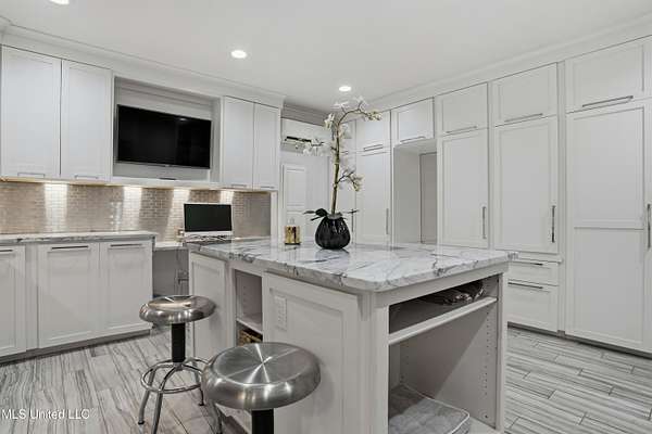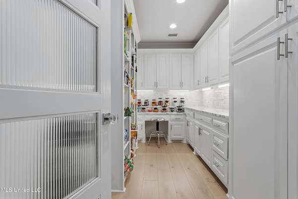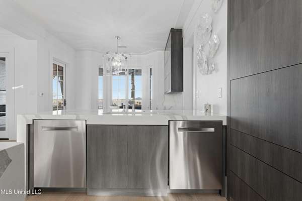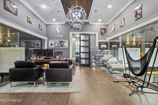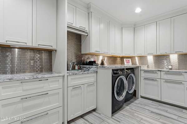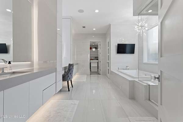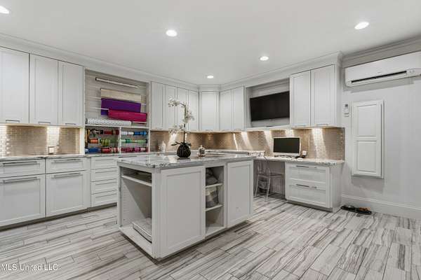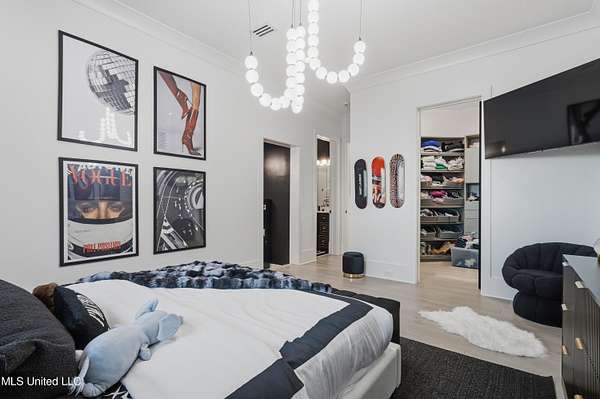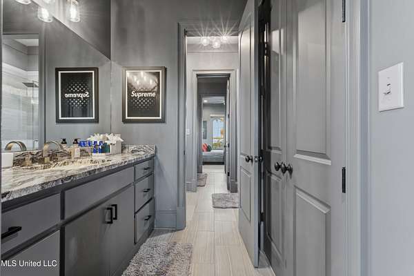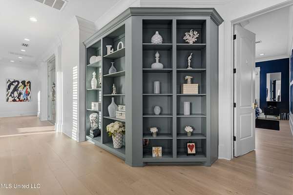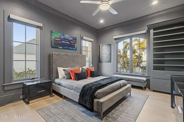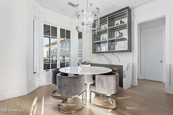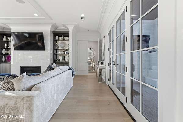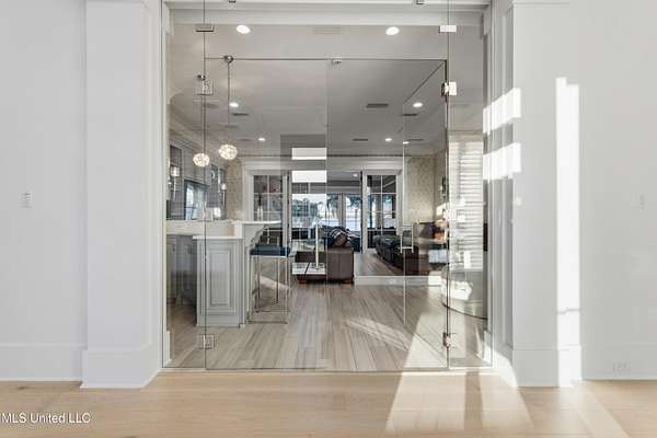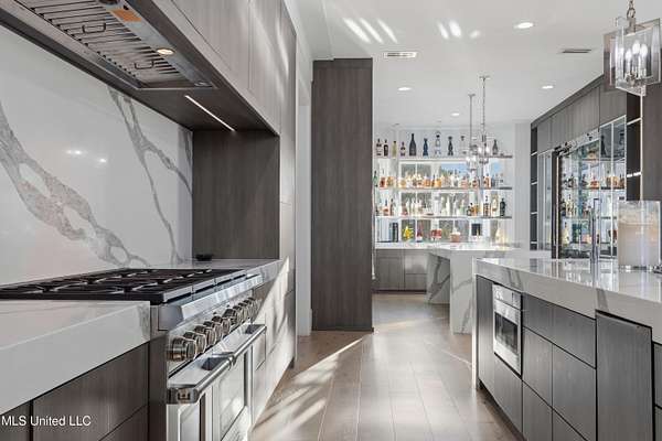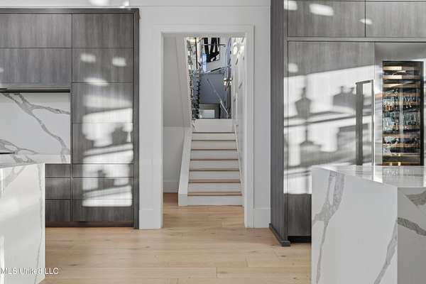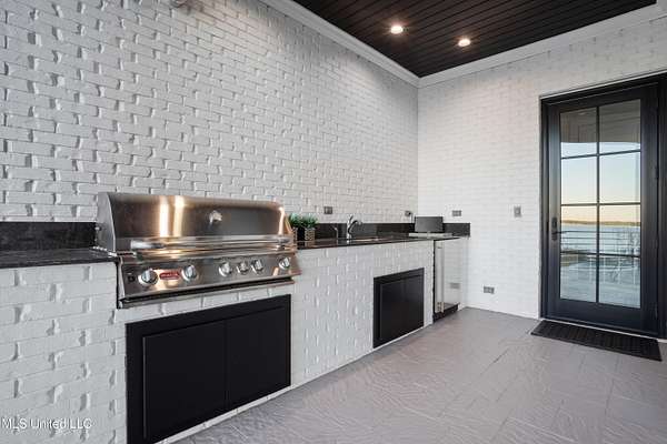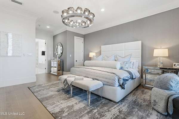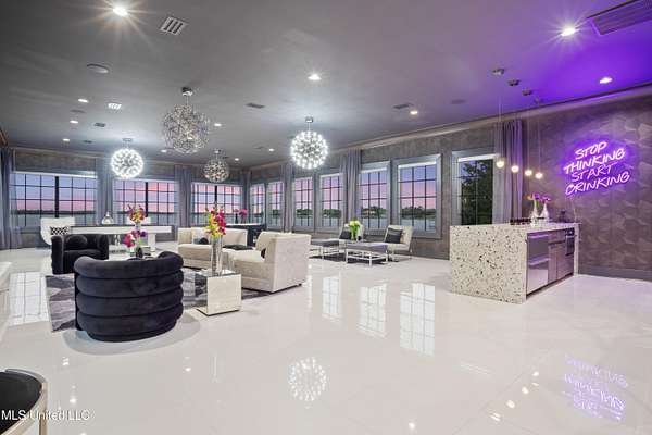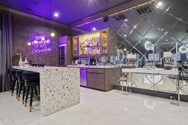 An unbelievable custom home situated on two waterfront lots in the Goose Pointe subdivision. Totaling 1.7 acres of prime waterfront property. This custom home has everything you could dream of for your family and entertaining! A grand living room with fireplace, built-in cabinets, a spacious kitchen that is equipped with top-of-the-line appliances, quartz waterfall edge countertops, a built-in dining table with waterfall edge, and a floor to ceiling wine wall. Gorgeous designer light fixtures throughout the home. The primary bedroom overlooks the water and has every custom designed feature you can think of. Upstairs, you will find four bedrooms with high ceilings, built-in bookcases, and countless custom features, and large closets. There's also a media room with built-ins and a full wet bar as well as a bonus room with built-in bunk beds. Enjoy views of the water from the second story balconies. The main house has an attached in-law suite. The in-law suite has its own private balcony, living room, kitchenette, and a full bath. There is also a separate entertainment room with a full bathroom, full kitchen and a wet bar overlooking the water. For the car lover, there is an eight car garage with a car lift and spinner. The garage area also consist of a gym, an office, and a half bath. A picturesque salt water pool, fire pit, outdoor kitchen, and bar provide the perfect space for outdoor entertaining. The outdoor space also consist of an Astroturf football field and basketball court. The dock and boathouse come suited with boat lifts and floating docks. This property underwent a remodel 3 years ago and is being sold completely furnished. This property is a showstopper!