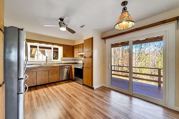 Searching for space, privacy, and a move-in-ready home close to town? This fully renovated property, 4.58 acres in Riverbend, offers the flexibility today's buyers are looking for. Completely updated with new flooring throughout, improved entry flow, and modern LED lighting, the main level features a bright and welcoming layout. The living room is anchored by a classic wood-burning fireplace and opens to the dining area and kitchen with granite countertops. Two bedrooms and two fully remodeled bathrooms provide comfortable main-level living. The lower level creates outstanding additional living space and is ideal for multigenerational living, guests, or extended family. This level includes two additional bedrooms, a full bath, a spacious family room with a second wood-burning fireplace, and a partial kitchen with a granite bar. With approximately 900 sq ft of finished space not included in heated square footage, plus a separate exterior entrance and dedicated parking area, the setup offers privacy and flexibility. Homes offering this much space and versatility rarely come available this close to town. Located just 4 miles from downtown, while still in a private setting.