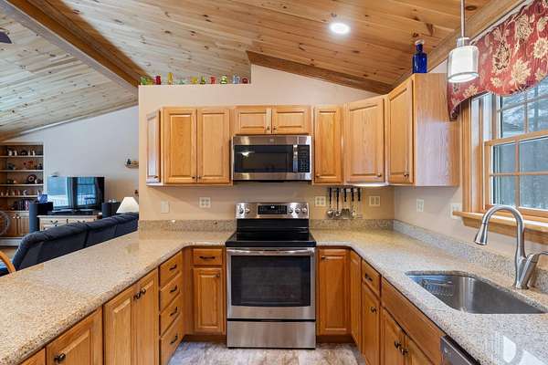 If privacy, scenic views, and easy one-level living are at the top of your list, this home is a must-see. Privately situated with beautiful views of Streaked Mountain, this thoughtfully designed property offers comfortable and versatile living space. The main level features three bedrooms and two full bathrooms, all on one floor, along with cathedral ceilings in the living room that showcase mountain views and sunsets right from your sofa. A two-car garage and generous storage throughout add everyday convenience. The finished basement expands the home's living space with two additional bedrooms, a full bathroom, and a flexible living area, ideal for guests, extended family, or a home office. Outside, enjoy the heated above-ground pool, relax in the sunroom, or take in the surroundings from the deck, perfect for entertaining or unwinding at the end of the day. This home is located on a paved, public road. A rare opportunity to enjoy privacy, views, and flexible living all in one exceptional home.