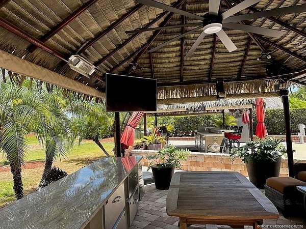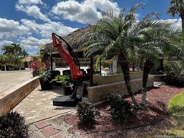 This meticulously planned 2524 square foot lot offers a unique opportunity, presenting itself as either one of two buddy lots or as a standalone oasis. Designed for convenience and comfort, a maintenance free Tiki featuring durable metal posts and a synthetic roof welcomes you into a cozy family room area equipped with a TV, surround sound system, and a granite-topped sideboard/server. Whether you seek relaxation or entertainment, this inviting space is the perfect retreat, complete with infrared heaters and drop-down sides to ensure year-round enjoyment, even on cooler evenings. Golf enthusiasts will delight in the proximity of this lot to the adjacent 18-hole par 3 golf course, offering unparalleled access to the greens just steps from your doorstep. Moreover, convenience is at your fingertips with the clubhouse, pickleball and tennis courts, shuffleboard, bocce ball, and the main pool and spa all within walking distance, ensuring endless opportunities for recreation and leisure.