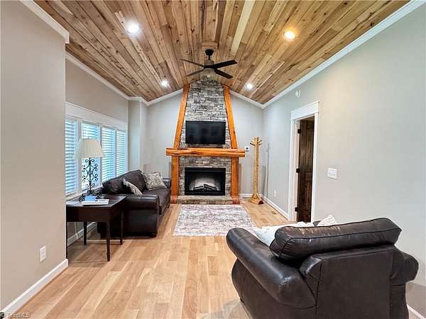 An exceptional investment opportunity w/ 3 nearly new, high-quality cabins situated on 5.1+/- acres of wooded land.Each cottage is finished with cathedral oak ceilings w/ cut stone fireplaces/gas logs.Granite countertops & beautiful tiled showers.Two of the cabin have 2 beds/2 baths and one has 1 bed /1 bath.Covered porches for guests to relax in rocking chairs while listening to the sounds of the surrounding forest remains highly marketable to short-term rental guests. Electric gated entrance, followed by a long gravel drive that enhances the sense of arrival and seclusion.The cottages are known collectively as the Cottages of Jones Von Drehl and are adjacent to Jones Von Drehl Vineyard and Winery.The land's natural wooded buffers delivers year-round privacy and attractive outdoor space for guests.Close to Stone Mountain State Park w/miles of hiking trails.Turnkey quality furnishings.Excellent for short-term rentals or a private family compound.Currently AirBB. 660 sq ft per cabin.