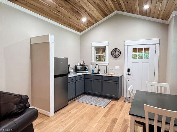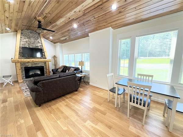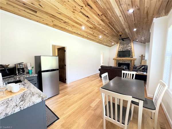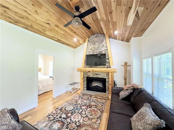 An exceptional investment opportunity w/ 3 nearly new, high-quality cabins situated on 5.1+/- acres of wooded land.Each cottage is finished with cathedral oak ceilings w/ cut stone fireplaces/gas logs.Granite countertops & beautiful tiled showers.Two of the cabin have 2 beds/2 baths and one has 1 bed /1 bath.Covered porches for guests to relax in rocking chairs while listening to the sounds of the surrounding forest remains highly marketable to short-term rental guests. Electric gated entrance, followed by a long gravel drive that enhances the sense of arrival and seclusion.The cottages are known collectively as the Cottages of Jones Von Drehl and are adjacent to Jones Von Drehl Vineyard and Winery.The land’s natural wooded buffers delivers year-round privacy and attractive outdoor space for guests.Close to Stone Mountain State Park w/miles of hiking trails.Turnkey quality furnishings.Excellent for short-term rentals or a private family compound.Currently AirBB. 660 sq ft per cabin.