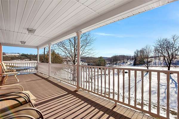 Experience breathtaking views and complete tranquility at 440 Owl Hollow Road. This expansive 2,600+ sq. ft. residence, situated on 4+ acres, offers an exceptional blend of comfort, privacy, and functionality. Nestled along the Laurel Highlands Scenic Byway, the property showcases stunning, picture-perfect vistas in every direction. A private, 500+ square foot, mother-in-law suite with its own entrance provides ideal accommodations for guests or extended family. The main level features a timeless kitchen that flows seamlessly into the formal dining area, highlighted by exposed wood beams and a beautiful fireplace. The main level, spacious laundry room and full bath add convenience, while the oversized family room offers exposed brick, abundant natural light, and direct access to the deck. Enjoy peaceful mornings and serene evenings on the covered porch overlooking the pond--an inviting space perfect for relaxation or entertaining. The home's layout provides exceptional flow for hosting gatherings. The upper level includes a generous primary bedroom with en-suite bath, two additional bedrooms, a full bath, and a versatile sitting area that could be converted back into an additional bedroom on the upper level, if desired.