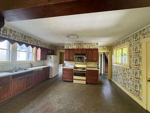 Distinctive Country Estate with Two Homes on 9.6 Rolling Acres Set amid 9.6 picturesque country acres, this unique property offers two homes and endless potential. The stone and stucco main residence features eight spacious rooms, including four bedrooms and four fireplaces, blending classic character with old-world charm. Rolling open land and mature trees surround the home, providing an ideal setting for a private country retreat, family compound, or restoration project. The detached 843 sq. ft., two-story guest house adds exceptional versatility-perfect for extended family, rental income, or a studio/workshop.P Restoration to the main house would include a new heating system, bathroom updates, fresh painting, and roof repair, offering an excellent opportunity to create a stunning showcase estate tailored to your taste. A rare find with remarkable potential-bring your vision and transform this classic country property into a timeless treasure.