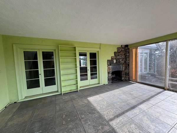- French Doors, Garden Area, Porch-Enclosed, Shed, Stone Wall, Terrace