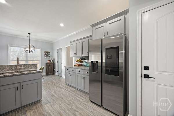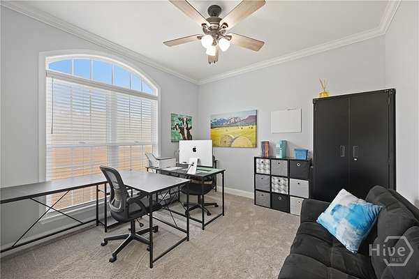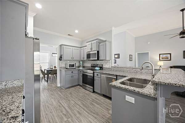 A rare opportunity to own a private 5-acre estate in the gated community of Rivercrest Plantation, where only 15 homesites exist and properties seldom come to market. Positioned at the end of a quiet cul-de-sac with a long driveway, this custom-built 5 bedroom, 4 full bathroom home delivers the privacy, space, and functionality you've been searching for, with most of the living thoughtfully situated on the main level and an additional bedroom and full bath upstairs ideal for guests or a private retreat. The main living area features LVP flooring throughout and soaring ceilings that create an expansive, open feel flowing seamlessly into a beautifully appointed kitchen complete with granite countertops, tile backsplash, abundant cabinetry, and brand-new appliances. Fresh interior paint and newer carpet enhance the move-in ready appeal. The primary suite showcases trey ceilings and connects to a spacious bath with dual granite vanities, a separate soaking tub and shower, and a private water closet. All four bathrooms are finished with granite countertops for a cohesive, elevated touch. Outside, enjoy a classic rocking chair front porch framed by piers, a fenced backyard space, and expansive acreage that is mostly fenced with gated side and rear access, offering room for outdoor hobbies, recreational vehicles, equipment, or animals. The attached two-car garage and additional 24x24 shop with an extended covered porch off the back provide exceptional storage for a boat, ATV, tractor, or workshop needs. With convenient access to the Hyundai plant, Pooler, Statesboro, and Guyton, this property offers the rare combination of gated privacy, usable acreage, and everyday convenience. If you've been waiting for acreage, updates, and exclusivity in one of the area's most limited communities, this is one you'll want to see in person!
