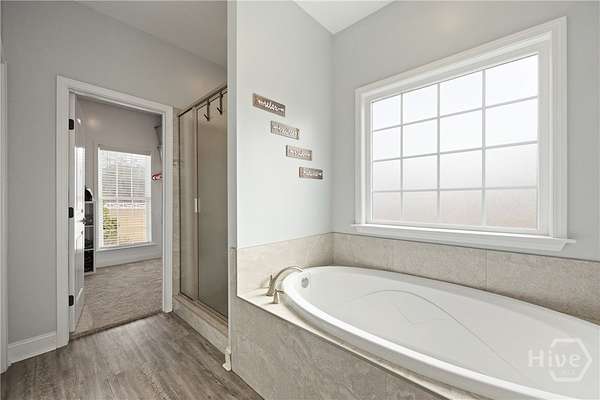 - Breakfast Area, Double Vanity, Entrance Foyer, Garden Tub/Roman Tub, Main Level Primary, Separate Shower