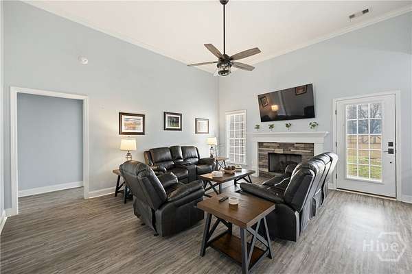 One-of-a-kind lease opportunity in the gated community of Rivercrest Plantation! Situated on 5 private acres at the end of a cul-de-sac, this custom-built 5BR/4BA home offers space, privacy, and functionality. Main-level living with an upstairs bedroom and full bath ideal for guests or a private retreat. Open-concept floor plan features soaring ceilings, LVP flooring, and a spacious kitchen with granite countertops, tile backsplash, abundant cabinetry, and brand-new appliances. Fresh interior paint and newer carpet throughout. Primary suite includes trey ceilings, dual granite vanities, soaking tub, separate shower, and private water closet. All bathrooms feature granite countertops. Exterior highlights include a rocking chair front porch, fenced yard, and mostly fenced acreage with gated access-perfect for equipment, recreational vehicles, or animals. Attached 2-car garage plus a 24x24 shop with covered porch for additional storage or workspace. Conveniently located near Hyundai, Pooler, Statesboro, and Guyton. A rare find offering acreage, updates, and privacy-schedule your showing today!