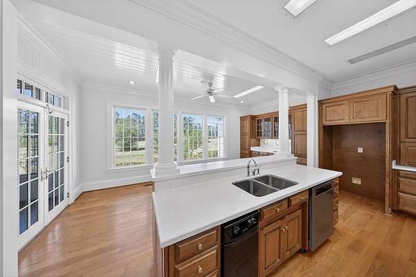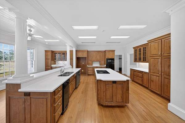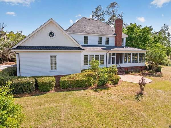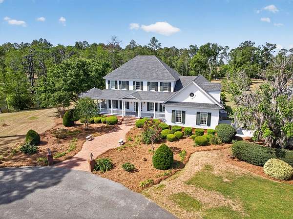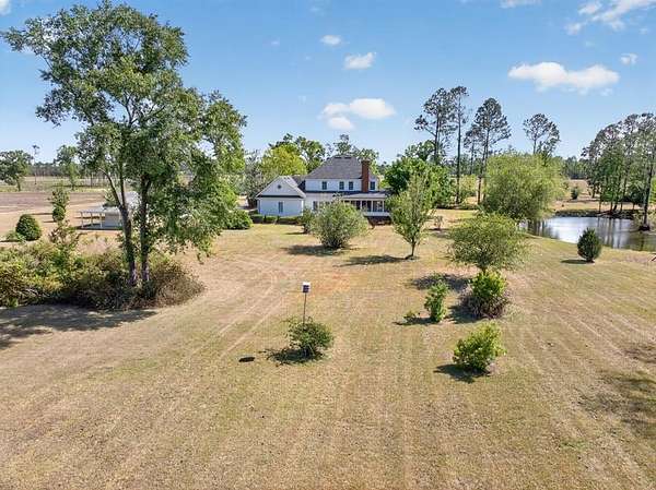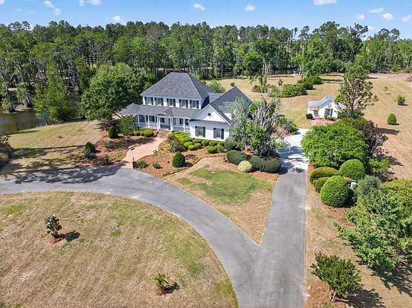 Classic Southern elegance on 26.74 acres. As you enter the property, a private -mile asphalt driveway lined with meticulously manicured holly trees creates a stunning approach and sets the tone for the estate beyond. This impressive 4,201 square foot, 5 bedroom, 3 full bath, 2 half bath home is situated on 26.74 surveyed acres in Lanier County, offering the ideal blend of space, privacy, and timeless Southern charm. From the moment you arrive, the stately faade, accented by copper gutters, manicured landscaping, and expansive wraparound porch—seamlessly connecting to a screened-in back porch—create a refined and inviting first impression. Inside, the home offers generous living space along with a finished bonus room featuring built-in storage throughout, providing flexibility for a variety of uses. A large walk-in attic offers additional versatility and could easily serve as a workshop or hobby space. Step outside and experience what truly sets this property apart. Just steps from the porch, an approximately 8-acre cypress pond stocked with trophy bass creates a private, resort-like setting right in your backyard. The land is equally impressive, featuring three outbuildings, including a charming she shed, a wooden pack house, and a maintenance/pump house equipped with a 6-inch deep well pump. The property also includes established muscadine vines, adding to the Southern character and the opportunity to enjoy homegrown harvests. Wake up each morning to the sounds of bobwhite quail and songbirds, and enjoy the peace, privacy, and natural beauty that only a property of this caliber can provide. A rare opportunity to own a true Southern estate with a grand entrance, exceptional land features, and a lifestyle that's second to none.