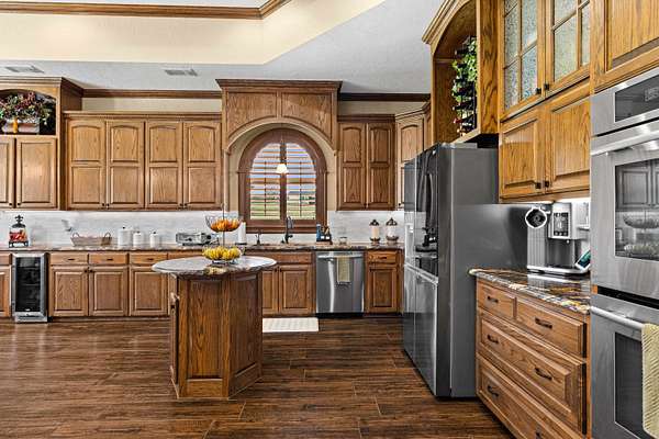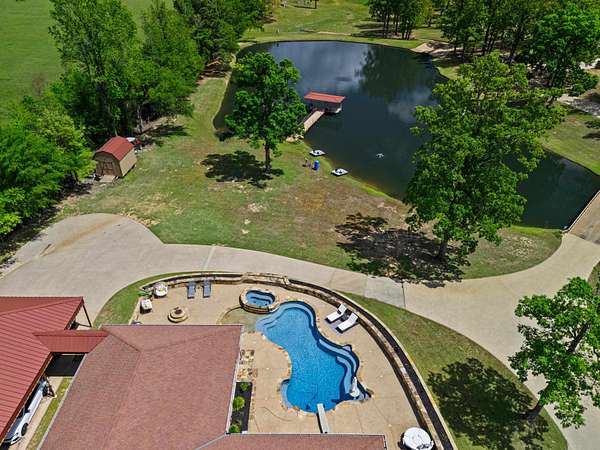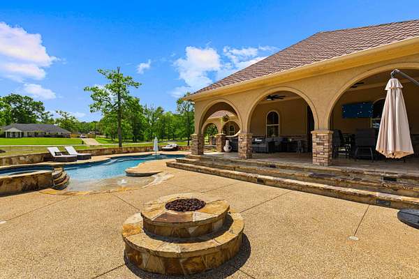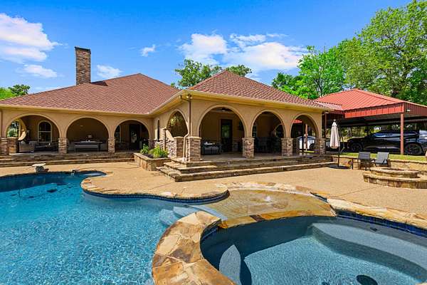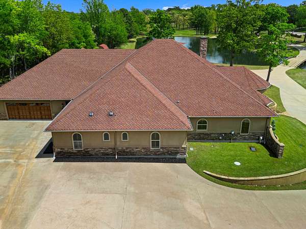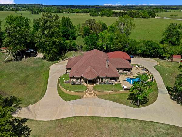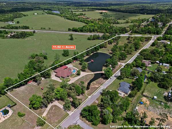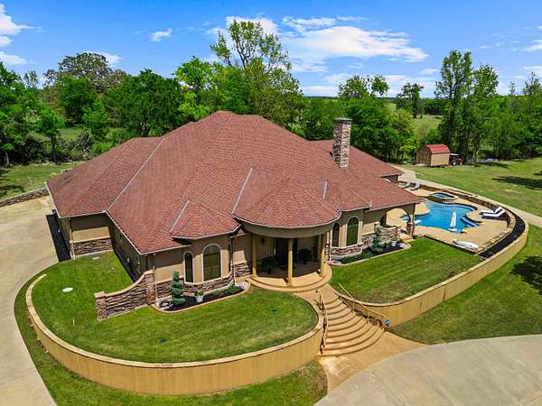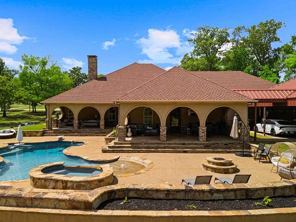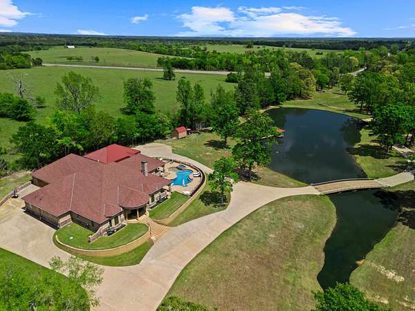 This one is the total package. From the moment you pull in, you will feel like you hit the jackpot. Situated on 11.5 acres, this immaculate custom home offers over 5,000 square feet of thoughtfully designed living space with resort-style outdoor living and unmatched functionality. Built in 2014, the home blends timeless design with quality craftsmanship throughout. As you enter through the grand entrance, you will immediately notice the attention to detail. Wood look tile flooring, granite countertops, custom oak cabinetry, shutters, and extensive trim work and crown molding carry throughout the home. The primary suite is truly a retreat of its own. With an impressive 30x40 layout, it offers the space and privacy of its own wing, perfect for relaxing, working, or creating your own personal escape. Each bedroom has its own private bathroom, along with an additional half bath for guests. While currently a 3 bedroom home, there are multiple flex spaces that can easily be used as additional bedrooms, offices, or a game room. Step outside and you will understand what makes this property so special. A heated gunite pool overlooks the property and is enhanced with Jellyfish lighting, creating a true resort-style setting. The private stocked pond, supported by a water well, adds both beauty and function while also assisting with irrigation. The property is built for both everyday living and entertaining with a 45x30 drive through garage, a 42x38 carport, and a multi dog run already in place. Conveniently located between Tyler and Longview and within reach of Shreveport and Dallas, you get privacy without sacrificing accessibility. Tempest Golf Course is just about a mile away. Luxury, space, and functionality all come together here. Homes like this do not come around often.