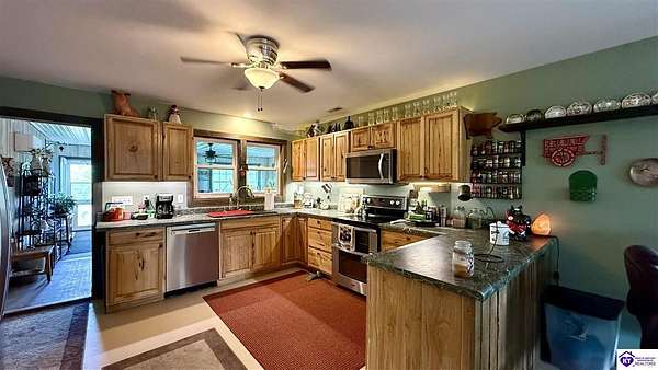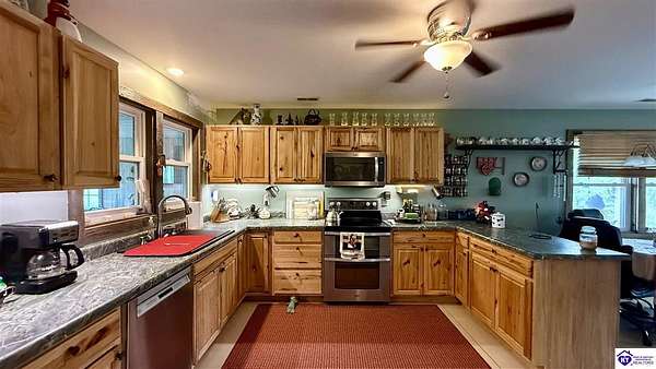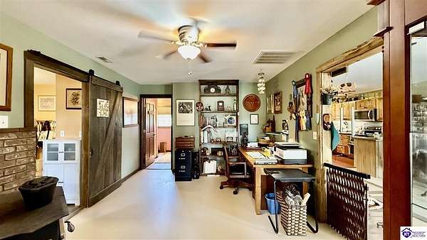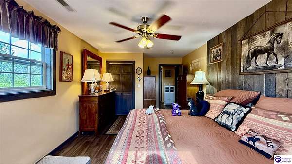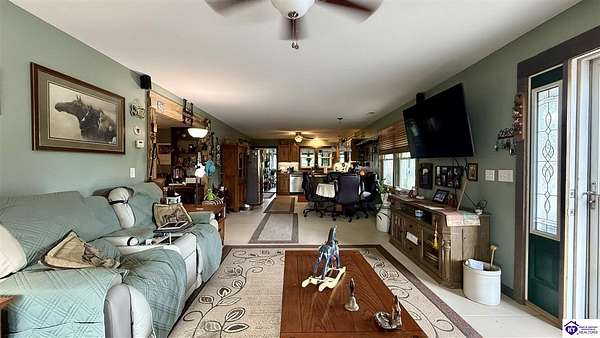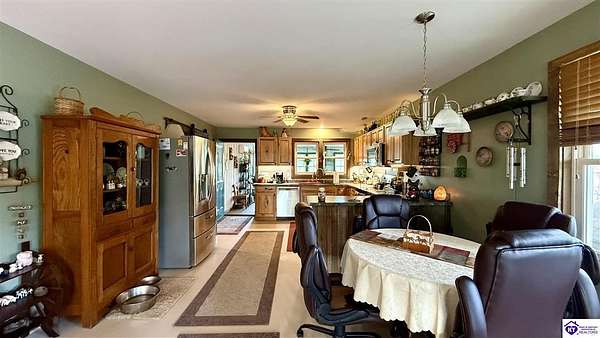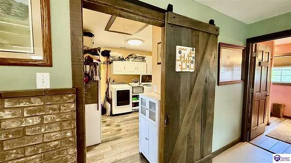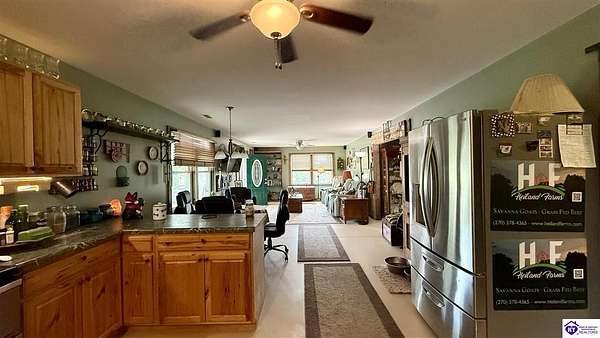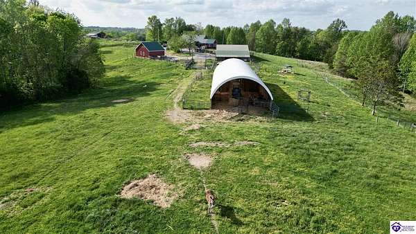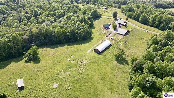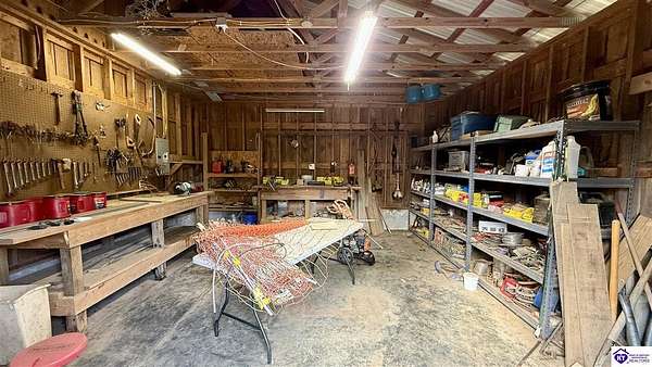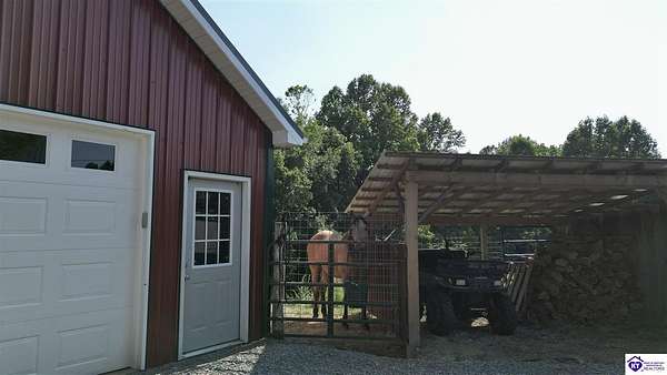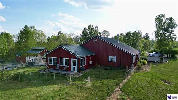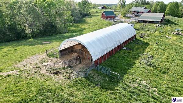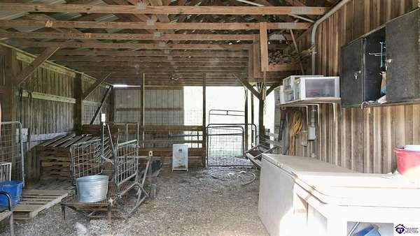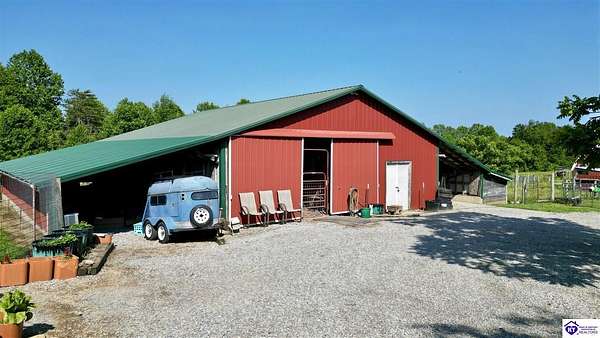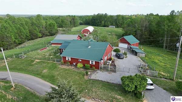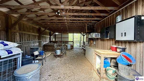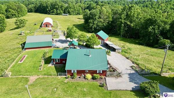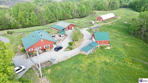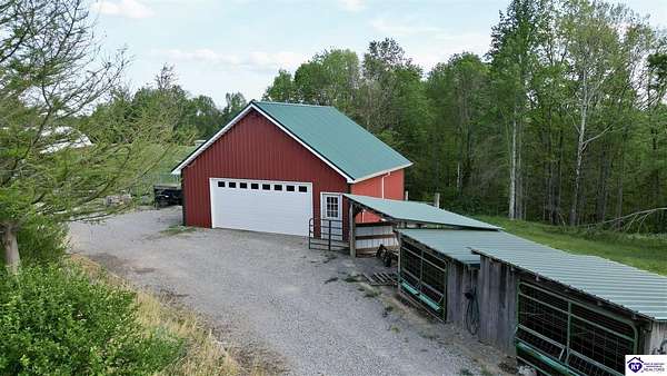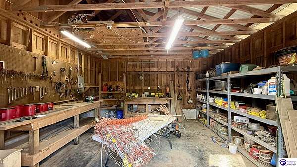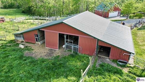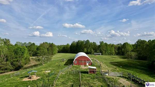Welcome to this breathtaking 65 acres m/l farmstead nestled in the heart of KY. This picturesque property offers the perfect blend of pastoral charm and modern comfort.The home is trimmed with authentic antique barn lumber reclaimed from the very land it sits on.The farm is well equiped for a variety of agricultural pursuits, boasting two barns bothequiped with water and electricty, a hoopbarn, and areas ideal for livestock,chickens,goats,cattle,or horses. Whether you're looking to homestead, raise animals,or simply enjoy the peaceful countryside, this property offers it all. This is more than a property---it's a lifestyle and a rare opportunity to own a true piece of Kentucky beauty! The beautiful, spacious oversized two-car gaurage has a large loft for storage. The upper barn has a large shop with three work brenches and lots of additional storage as well.