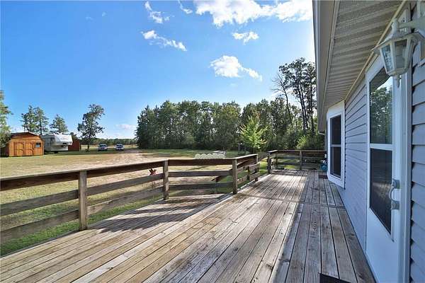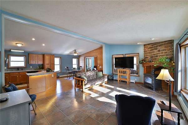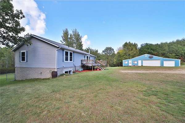 Charming 2-bedroom, 2-bath Pillager home offering a peaceful country atmosphere just minutes from town, set on 4+ acres with plenty of elbow room. The open-concept living, kitchen, and dining area is ideal for everyday living and entertaining, complemented by a bright four-season sunroom. Enjoy outdoor living with front and rear decks, a rear patio, and a walk-out basement. The finished lower level features an open layout with potential for additional bedrooms, plus a laundry/storage room and ample space for expansion. A large garage includes a shop/man cave and lean-to, making this property perfect for hobbyists, storage, or extra workspace. This one is a must see. Don't miss out, this property has alot of appeal.