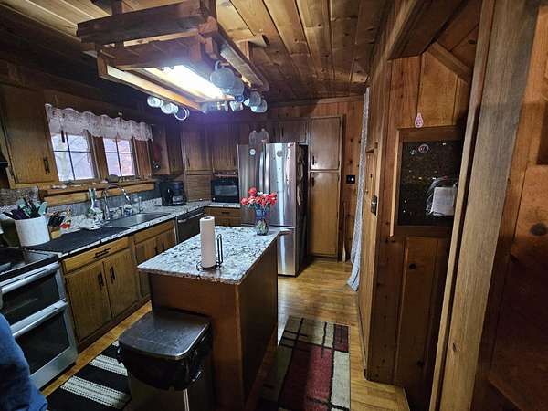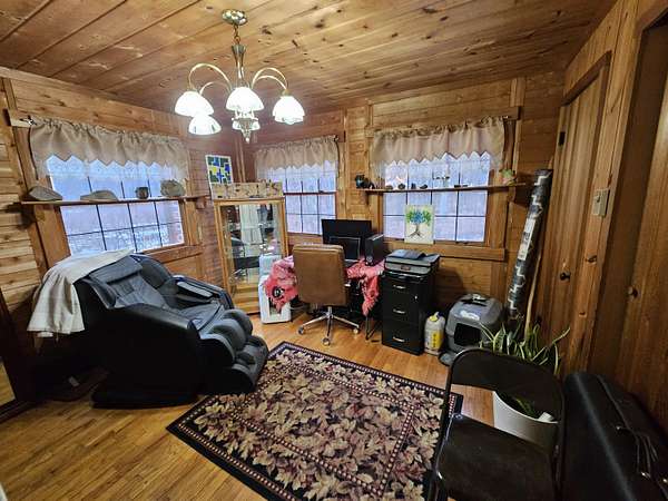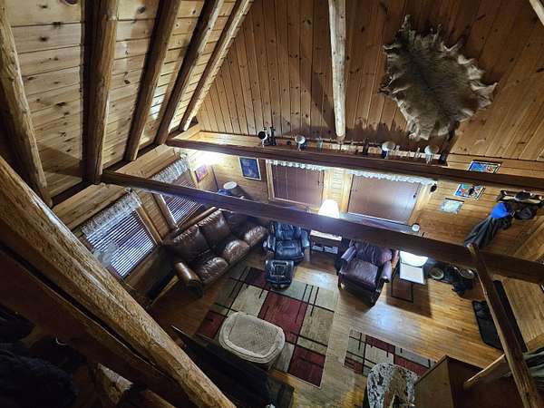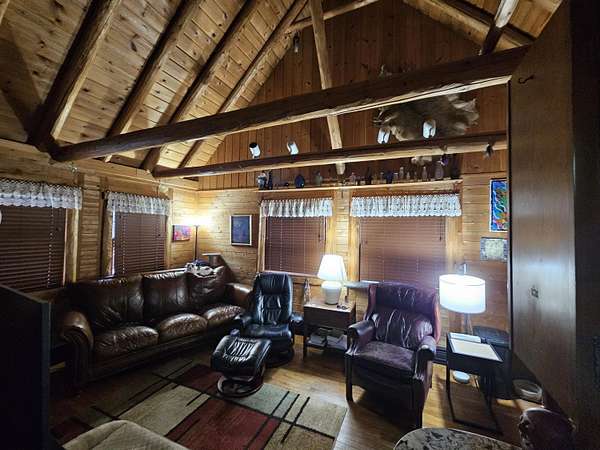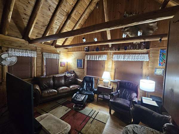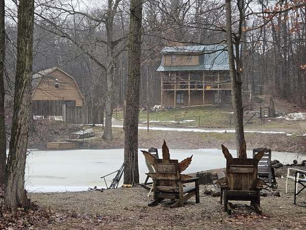 This attractive log home- 3 bed, 2.5 bath- on 10 acres of wooded property full of wildlife with a stocked pond is magnificent! It is conveniently located in Hillsdale township, within a few minutes to schools & shopping. The upstairs features a master bedroom with master bath and a walk in closet. The main floor consists of the living room, kitchen, dining room/den, and the laundry room with a 1/2 bath. Lower level has a sitting area, 2 bedrooms, kitchenette and a full bath. The 2 car garage has its own 200 amp electrical service, A/C and furnace, and a bonus area upstairs that could be easily turned into an apartment or rec area; wired for 120 and 240. A new metal roof was added in 2022 on the house, and many other updates throughout. *BONUS the property has an artesian well by the garage. OR- if you were to choose to, this home could be made into an income making machine with 3 possible rentals!!! Come take a look!