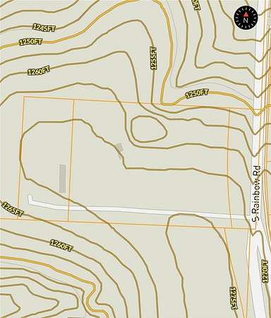 West on Rainbow Road, north at second roundabout/ continue onto Rainbow road, gravel drive on left