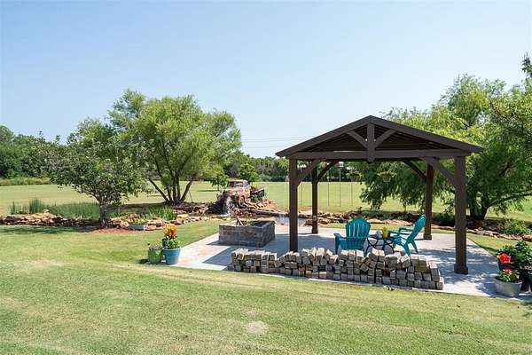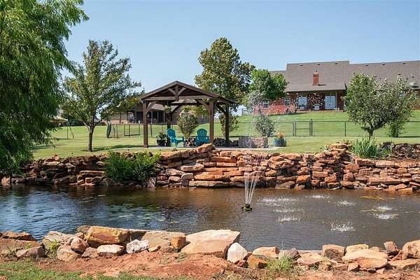 Enjoy quiet mornings or evening sunsets from the large covered front porch overlooking the serene lake across the road. The herb garden is bursting with basil, sage, thyme, tomatoes, and rosemary. The backyard oasis features a huge koi pond with a gorgeous fountain and a unique old truck water feature. Relax or entertain under the pavilion, added in 2018, complete with a patio and fire pit--ideal for s'mores, hot dogs, or simply enjoying the peaceful sounds of water and nature.
