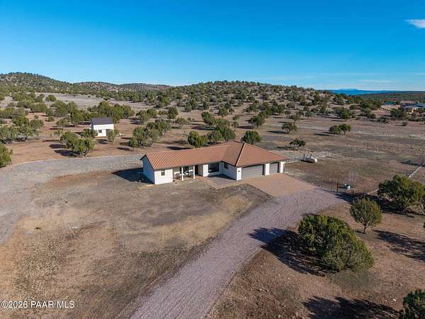 Tucked beyond the ordinary on more than 12 pristine acres in coveted Crossroads Ranch, this exceptional retreat is where space, serenity, and possibility converge. Designed for both gracious everyday living and effortless entertaining, the desirable split floor plan offers privacy and flow, all framed by sweeping, wide-open views that stretch to the horizon. Thoughtful features elevate the experience, sprinklered for added peace of mind, an oversized three-car garage, a premium whole-home water system with reverse osmosis and soft water, and a dedicated detached workshop ready for hobbies, storage, or creative pursuits. With plans, utilities, septic, and building approvals already in place for a second residence, the opportunity to expand is immediate and seamless. Meticulously maintained and truly move-in ready, this is a property that doesn't just meet your needs, it invites you to dream bigger and build the future you've been waiting for.