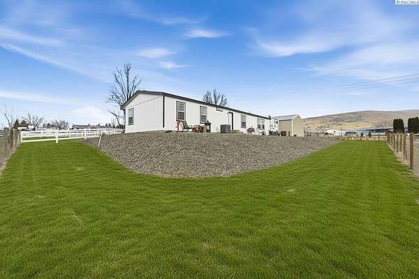 Red Mountain Horse Property + 24x36 Shop on 2.18 Acres! Welcome to your chance to own a true lifestyle property at the base of Red Mountain--where you can live the rural dream with horses, space, and freedom while still enjoying a quick commute and close proximity to West Richland and Benton City schools. This updated manufactured home sits on 2.18 usable acres and features 3 bedrooms, 2 full baths, and 1,780 sq ft of comfortable living. The home shines with smart updates that matter: new LVP flooring in the kitchen, primary bedroom, and front living room, new interior baseboards, and a clean, move-in-ready feel throughout. Outside is where this property becomes special--bring your horses and enjoy a well with a 3-horse pump setup, wide open space, and the kind of scenery that makes you want to ride through the countryside and soak in vineyard country living. A 24x36 shop gives you the space for tack, tools, toys, or projects, and recent improvements like new basalt + gravel driveway and new grass create strong curb appeal and everyday practicality. Whether you're a horse lover looking for the real deal, a shop-first buyer who needs room to work and store equipment, or someone wanting peaceful country living without being far from town, this property checks the boxes that are hard to find in today's market. Acreage, shop, horse setup, and location--this is the one. Some of the photos have been AI staged for Illustration purposes. Feel free to reach out with any questions.