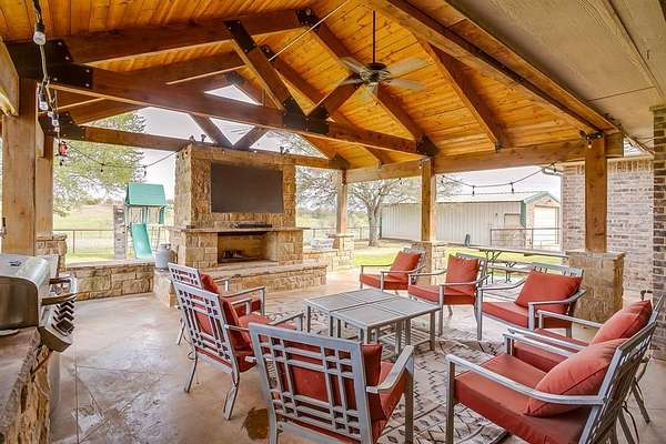 Set on a breathtaking 5-acre spread in the highly sought-after Aledo ISD, this remarkable single-family home offers 2,916 square feet of thoughtfully designed living space that blends comfort, functionality, and charm. With 4 spacious bedrooms, 3 bathrooms, and a versatile game room, this home is perfectly tailored to fit your lifestyle—whether you're hosting a lively gathering or enjoying a quiet evening in. Equestrians and animal lovers, take note: this property is a dream come true! It’s fully fenced and cross-fenced, complete with a 36 x 36 barn featuring 4 stalls, plus a separate 24 x 36 insulated metal shop building with a concrete slab. Private motocross track in the front pasture is perfect for dirtbike enthusiasts! A private well and an aerobic septic system add convenience to rural living, while the open acreage provides plenty of room for your cattle, horses, or simply soaking up the beauty of the surrounding landscape. Inside, the heart of the home is the open kitchen and connected living spaces, ideal for entertaining or everyday family moments. When it’s time to unwind, step out onto the expanded covered patio, where the outdoor kitchen with grill and bar area, plus a stunning stone fireplace, create the ultimate space for al fresco dining or relaxing with friends. The views of the rolling acreage will leave you in awe. Perfectly positioned between 1187 and 377, this property offers an easy commute to Fort Worth and sits just minutes from the exciting new Bluejack Ranch Golf Course. Whether you’re envisioning cozy nights by the fire or sunny afternoons exploring your land, 4401 Kelly Rd delivers a lifestyle that’s equal parts serene and convenient.