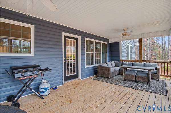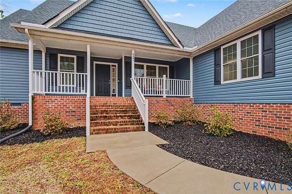 This almost New Construction Beauty built in 2021, features a large amount of acreage (almost 6 acres ) additional Bonus Room with closet, just a short walk to the lake. Open floor plan with hardwood, carpet and ceramic tile throughout- ceiling fans, recessed lights. Gourmet kitchen boasts an island, stainless steel appliances and granite counters. Large Primary Suite with separate tub and shower. Nice Laundry room with built in cabinets and washer dryer that convey. Large Bonus/ FLEX room over the garage with Closet and separate Mini Split could offering additional room for a growing family or guests. Attic storage, insulated garage walls and sheetrock ceiling. The back yard is fenced and has a Huge 27' by 12'rear porch and recently cleared land behind the back yard that makes use of the additional acreage. There is a chicken coop that conveys for your farm to table enthusiasts rounding out this magnificent home. Close to Ft. Lee and I85/ I95 for an easy commute to work and close to Lake Chesdin for you water lovers. A Must See!