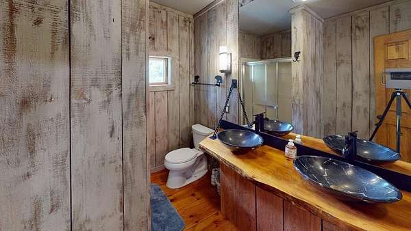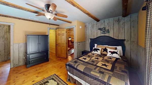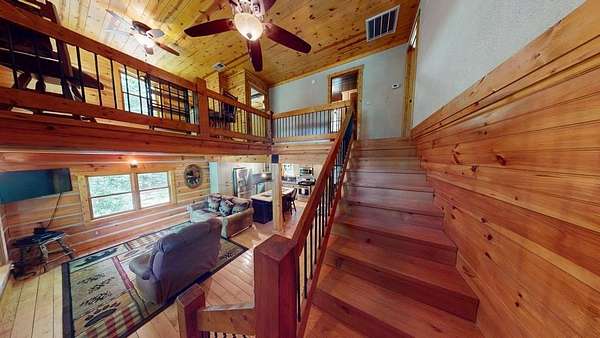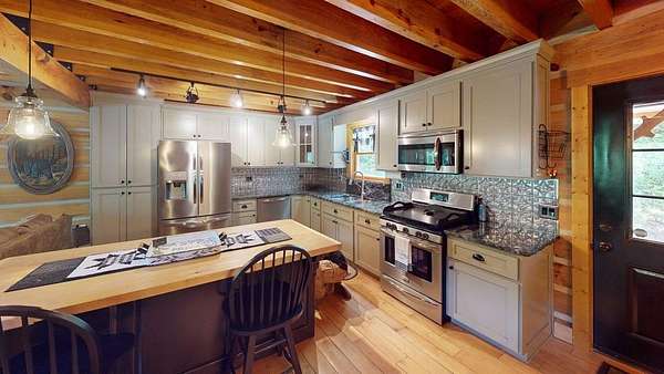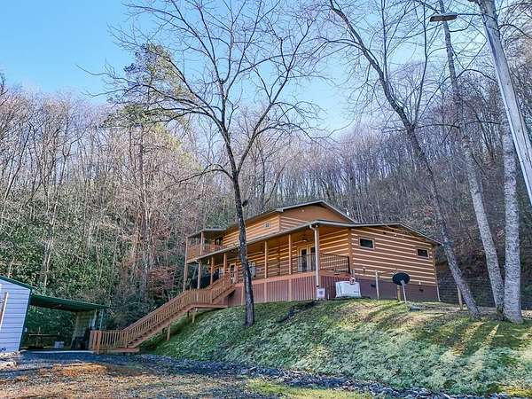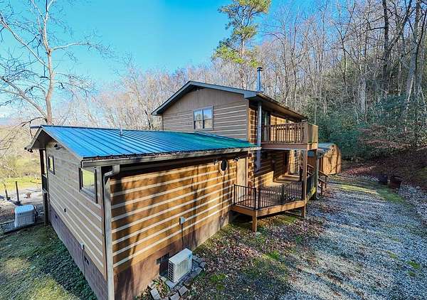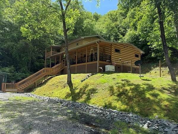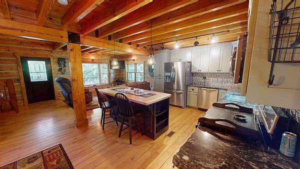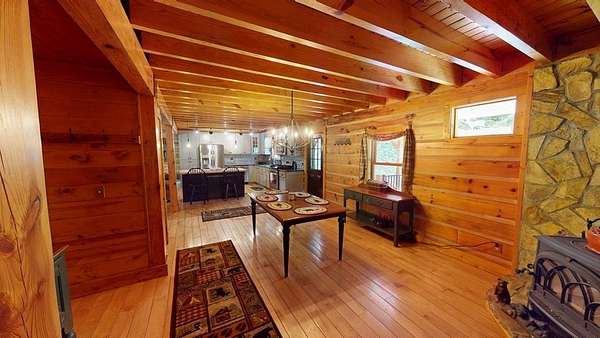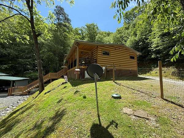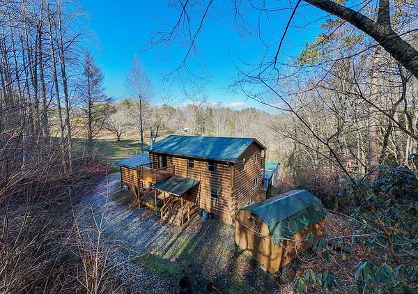 True Mountain Log Cabin Retreat on 5+/- Acres - Furnished! This stunning chinked log cabin checks every box for your dream mountain escape. Nestled on over 5 beautifully groomed acres with easy year-round access, this home offers ultimate peace and privacy--yet it's just minutes from the quiet, charming town of Andrews and close to top destinations like the Nantahala River, Lake Nantahala, and Great Smoky Mountain attractions. Step inside to refined rustic elegance featuring soaring wood-beamed ceilings, granite countertops, custom cabinetry, and stainless steel appliances. The spacious layout includes master bedrooom on main floor complete with cozy fireplace, large master bathroom, huge walk in closet and adjacent sewing room. Total of 2 bedrooms plus 2 versatile bonus rooms--ideal for guests, hobbies, or extra sleeping space. The large master suite also boasts a private deck and an attached room perfect for a home office, nursery, or craft space. The master bedroom has private exterior door and patio door to the deck . A second bedroom also offers a private deck and generous closet space and very cool bathroom. The warm, inviting dining area features a cozy wood-burning stove--perfect for gathering with friends and family on cool mountain evenings. Two separate living areas make entertaining effortless, both opening onto wide porches where you can relax in a rocking chair and soak in the mountain serenity. This cabin comes furnished as shown in the photos--move right in and start enjoying mountain living from day one! Outside, enjoy a bubbling stream, fire pit, walking trails, and scenic pastures all around. There's also a large detached garage/workshop, a two-car metal garage, full RV hookup & generator. Pet lovers will appreciate the fenced areas allowing dogs to roam safely indoors and out. Whether you're looking for a full-time residence, vacation home, or turn-key rental investment, this property offers a rare blend of comfort, quality, and natural beauty.