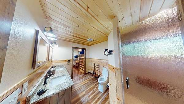 - Central Vacuum, Laundry On Main, Solid Surface Counters, Walk-In Closet(s), Wood Ceiling(s), Wood Walls