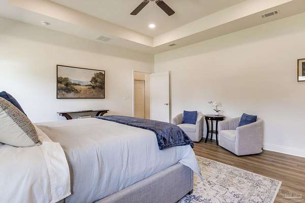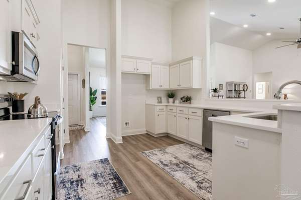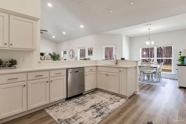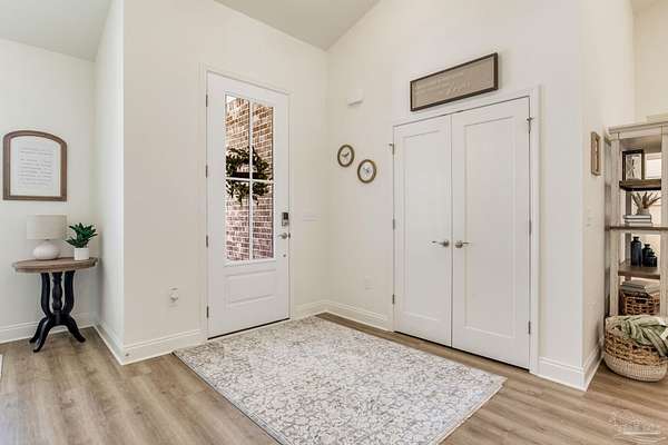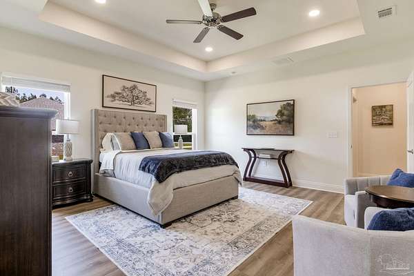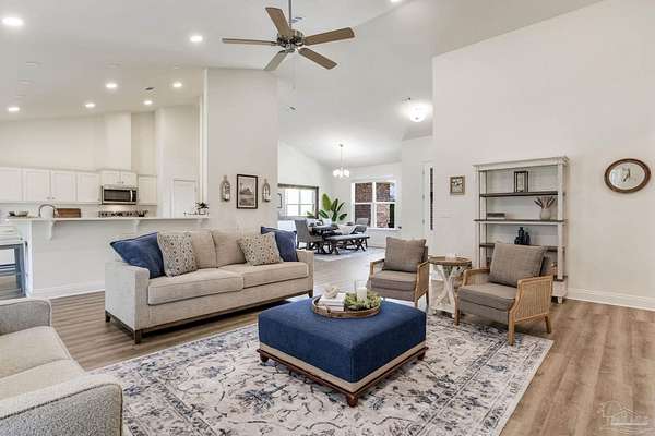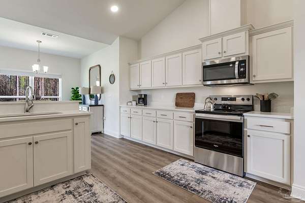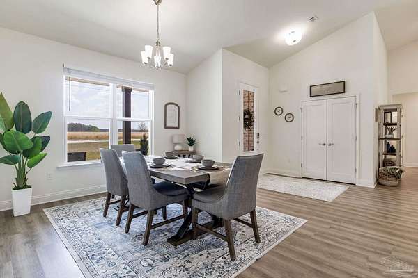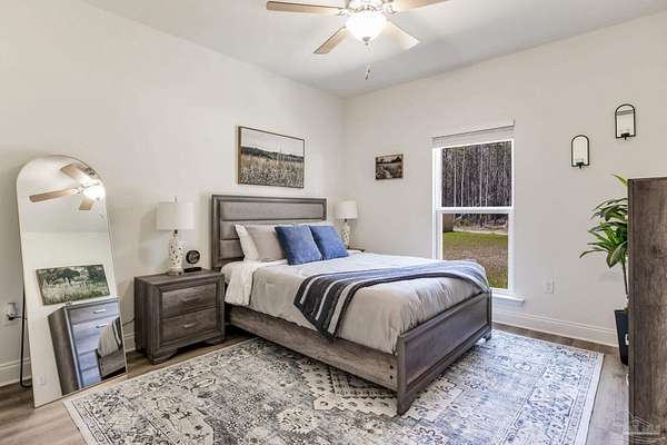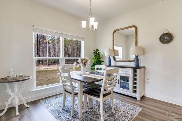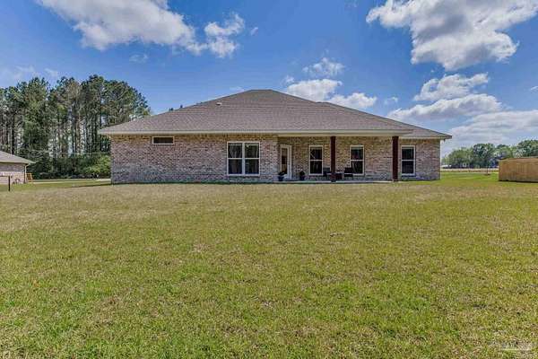 Images are from the same floor plan. The final appearance of this home, including the exterior and interior finishes, may vary as it is currently under construction. Exceptional CRAFTSMANSHIP. Lasting QUALITY. Inspired DESIGN. Welcome to THE BAILEY floor plan-a comfortable 4-bedroom, 2-bath home with a 2-car garage, set in the peaceful countryside of The Pines at Crofton Farms. This thoughtfully crafted home, built by a trusted local developer, blends style with practical features for everyday living. The open-concept living area with cathedral ceilings and 9-foot ceilings throughout the rest of the home creates a bright, inviting space perfect for family time or having friends over. In the kitchen, the large peninsula and quartz countertops provide plenty of room for cooking and gathering, with an adjoining dining area that's great for meals and conversation. Durable LVP flooring in the main areas, the tiled floor in wet areas and shower in the master bathroom adds a nice detail to enjoy. Outside, the covered porch overlooks a private, one-acre lot with mature trees-a peaceful spot to relax. Though it feels tucked away, it's only 20 minutes from the new Publix and close to Blackwater River State Forest for those who enjoy the outdoors. Designed with comfort and ease in mind, this home is ideal for those looking for a mix of space, nature, and convenience at The Pines at Crofton Farms. We'd love to show you around.