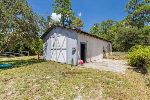 In Paisley over 5 acres of property with this 3 bedroom 2 bathroom home. An oversized detached garage (1181 sq ft) with workshop. There is also an enclosed pole barn to use for your livestock as well. Fenced and some cross-fenced. The home needs some TLC but certainly keep this in mind with all the possibilities of home ownership. No stove or refrigerator. New A/C Sept. 2025. Open floor plan with great room, dining room and kitchen. Wood burning fireplace in Great room. Separate living room and split bedrooms. All ceramic tile floors and concrete floor in primary bedroom.