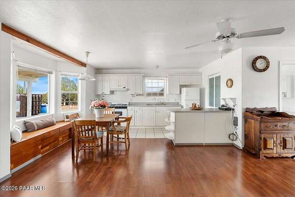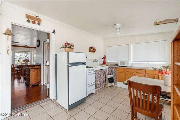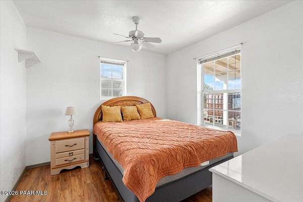 Charming off-grid cottage offering 2 bedrooms and 1 bath, powered by solar with propane and hauled water, plus rain catchment system. Set on a beautiful, private property with expansive views, mature trees, and varied terrain ideal for outdoor adventure. Features include a detached garage, large workshop, and multiple storage sheds. Vintage Silver Streak trailer on site, ready to be transformed into a unique guest suite. Peaceful setting with abundant privacy, yet conveniently located just 20 minutes from Ash Fork. Seller is offering a $15,000 concession for repairs/upgrades.