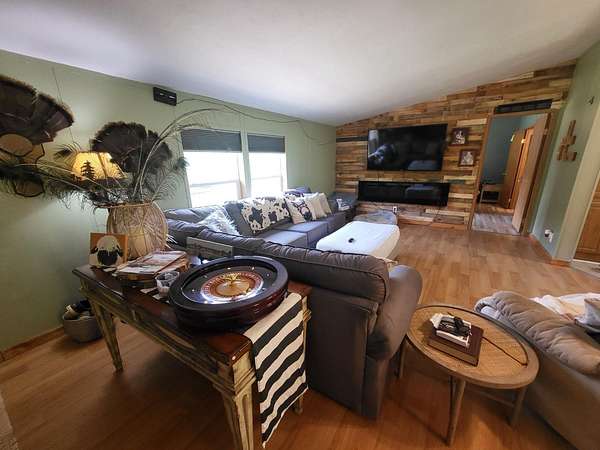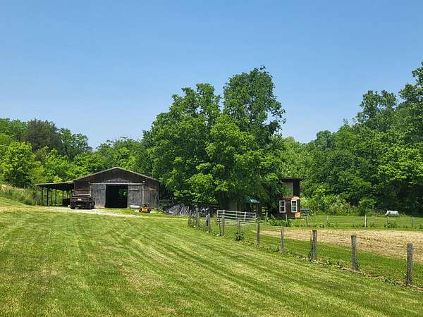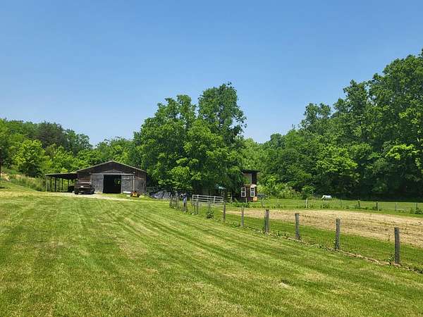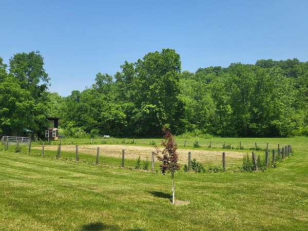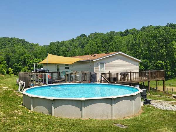 Private paradise on 128 acres in Ohio County. Ranch w/ 4-bedroom, 3 full baths, a partially finished walk-out basement, in one flexible property. Open pasture, wooded ground, and two creeks create a strong mix of farm, recreation, and outdoor use. Existing improvements include a barn, pole barn, six horse stalls, and fenced areas suited for agricultural or hobby-farm needs. Inside, the main living spaces connect to an open kitchen and dining area, while the lower level adds finished space for work, guests, or storage. An elevated deck and above-ground pool extend the living area outdoors. Bedroom laminate flooring, updated countertops, refreshed lighting, and room to ride, roam, or manage livestock add to the property's range and day-to-day function. This large tract balances usable ground, wooded cover, and water features. Only an Hour to downtown Cincinnati