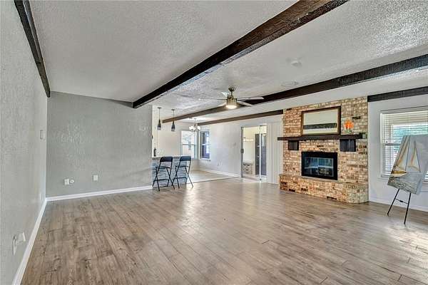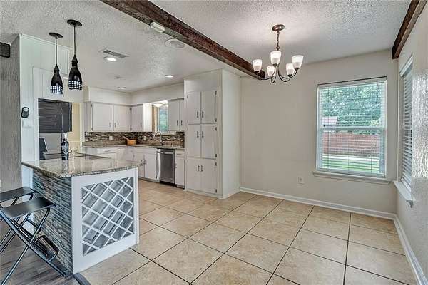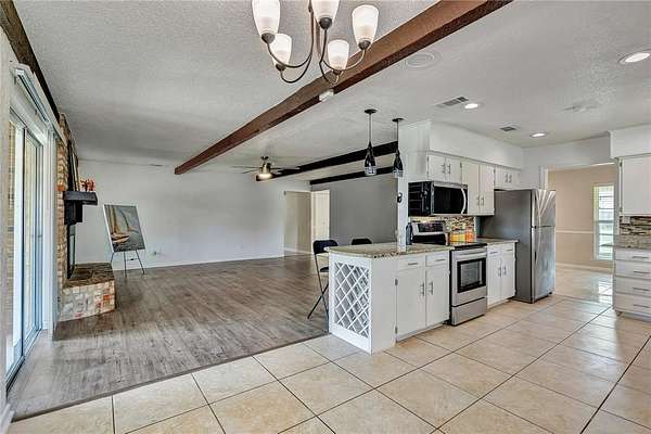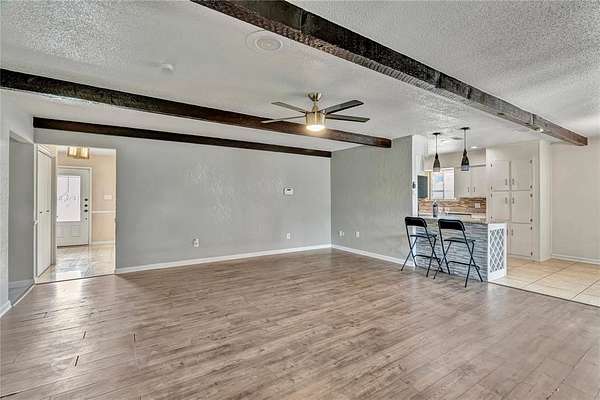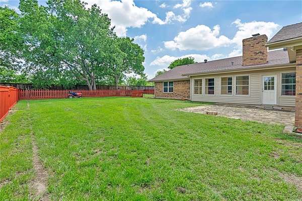 Rare find in the heart of Keller — space, privacy, and room to breathe. This 3-bedroom, 2-bath ranch-style home sits on acreage surrounded by mature trees in Keller ISD, minutes from shopping, dining, and retail — a combination that is increasingly hard to find. At 2,325 square feet, the open layout features a family room with exposed wood beam ceilings and brick fireplace, separate living room, formal dining, breakfast nook, and a kitchen with white cabinets, granite counters, stainless appliances, and a breakfast bar with built-in wine rack. No carpet throughout — wood-look and tile flooring in every room. Primary suite includes a double marble vanity and custom tiled walk-in shower. Second bath features a soaking tub with designer tile surround. Oversized laundry room with utility sink connects directly to the primary suite, the hallway, and the sunroom — functioning as a true mudroom hub. Sunroom leads to the 2-car garage. Expansive fenced backyard with flagstone patio, sprinkler system, and massive shade trees. Wide front porch stretches the length of the home. Secluded acreage with mature trees this close to shopping, dining, and top-rated Keller ISD schools — it's a uniquely private setting that is nearly impossible to find at this price point!