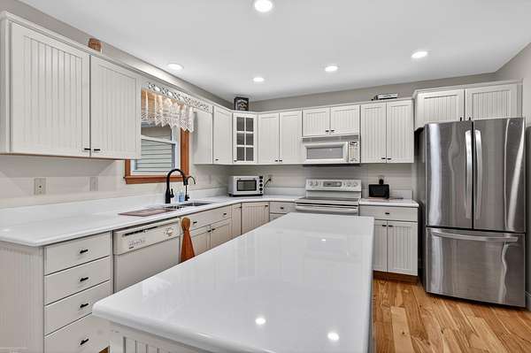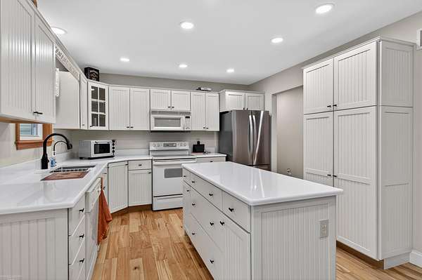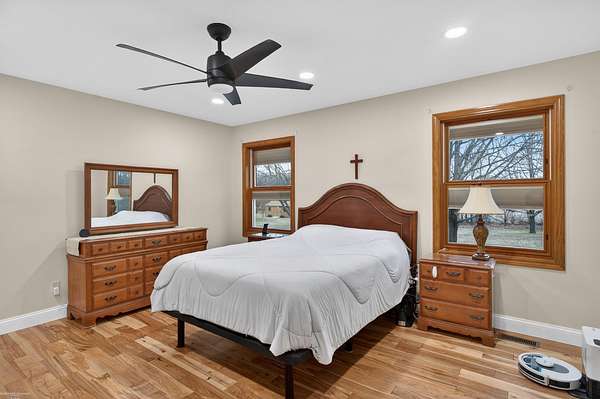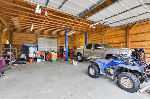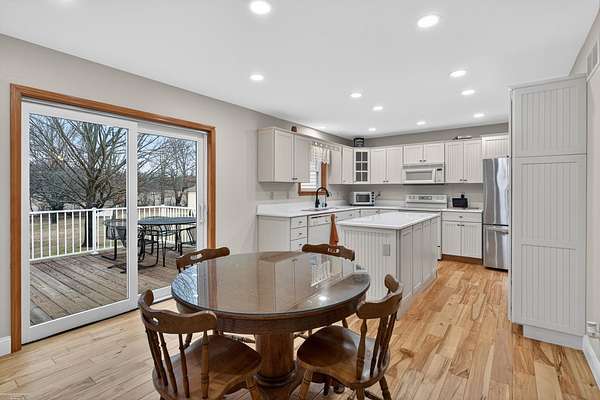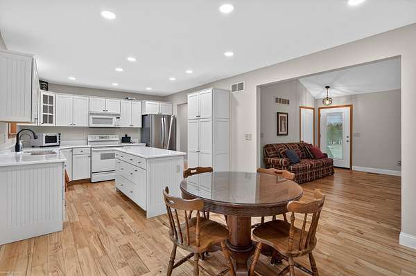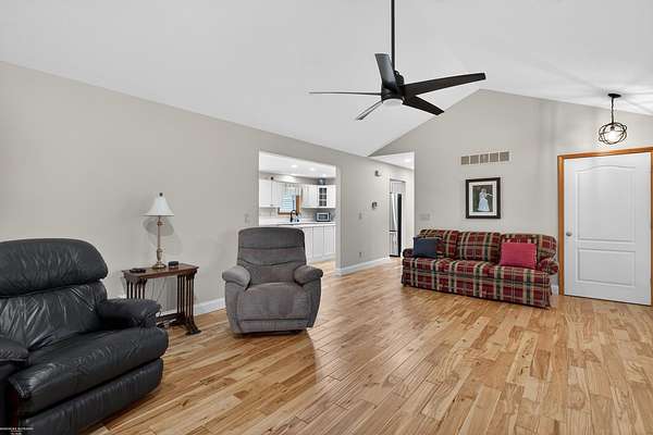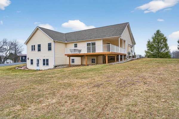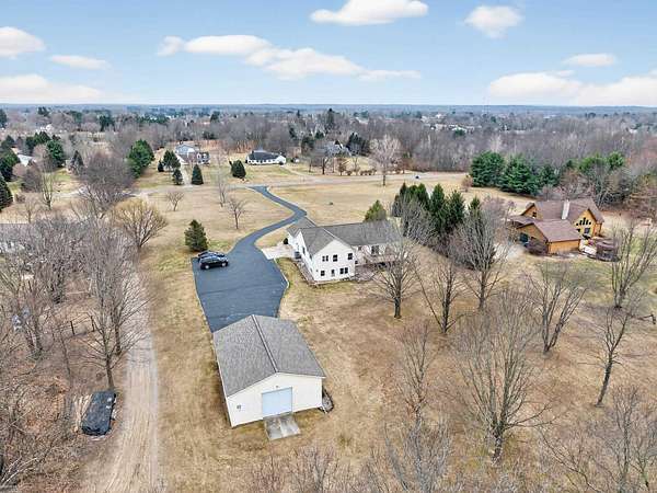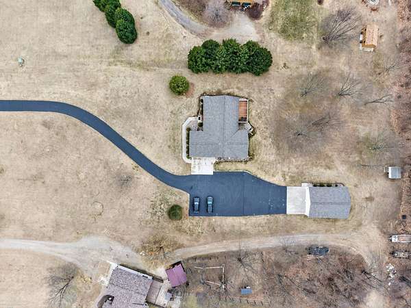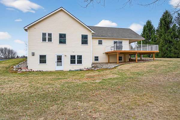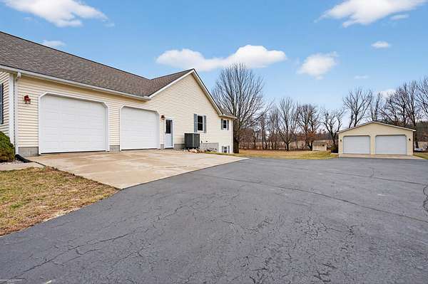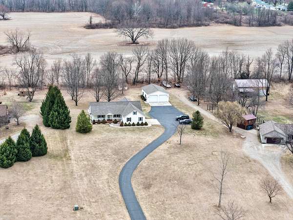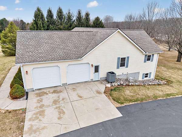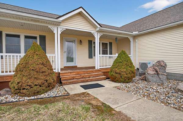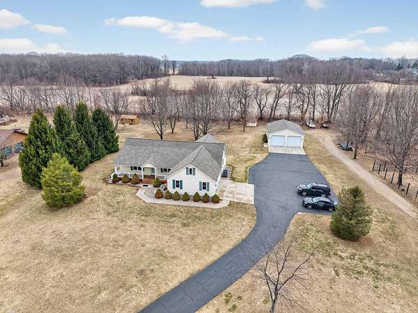 This beautifully maintained 3-bedroom, 2-bath home, built in 2001, offers 1,620 square feet of comfortable living space surrounded by peaceful countryside views. A long paved driveway leads to a bright open-concept interior featuring birch hardwood flooring and a spacious kitchen with quartz countertops, abundant cabinetry, and a center island perfect for gathering and entertaining. Recent major updates provide peace of mind, including a new natural gas furnace and central air (2021), dimensional shingle roof (2021), whole-house generator (2022), and new well pump with casing and bladder (2024). Additional features include ADA high-rise toilets, a whole-house surge protector, electric car charger, and heat and A/C in the attached garage. Enjoy relaxing or entertaining from the elevated deck overlooking wide-open acreage, while the walkout lower level offers added flexibility and direct backyard access. A 2-car attached garage and 30x40 pole barn provide excellent space for storage, hobbies, or workshop needs. Offering privacy, functionality, and valuable updates throughout, this property delivers the best of country living with modern comfort.