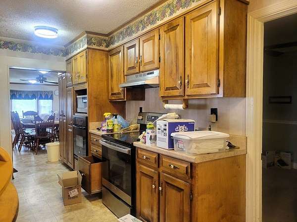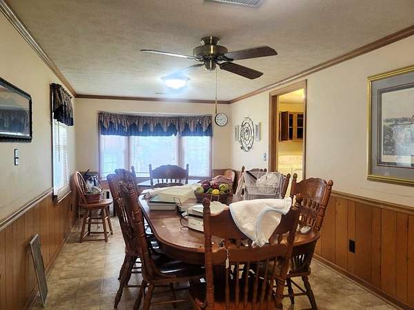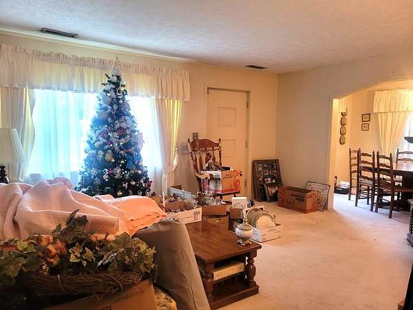 3 bedroom, 2 bath brick home on 2.8 acres. Home features formal living room, breakfast room, dining room with bay window, and family room. Kitchen has smooth top stove, a wall oven, and lots of cabinets. Single garage with storage room. Back yard has a patio, covered deck, and large outbuilding with power.