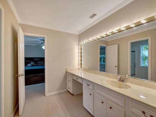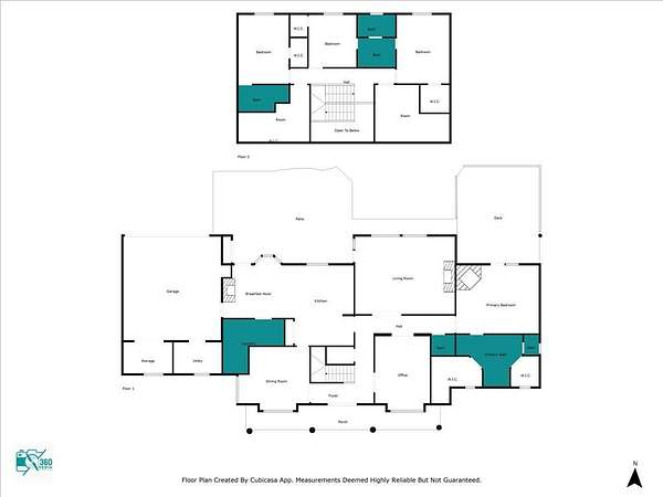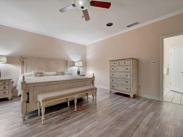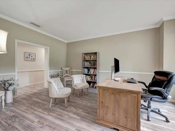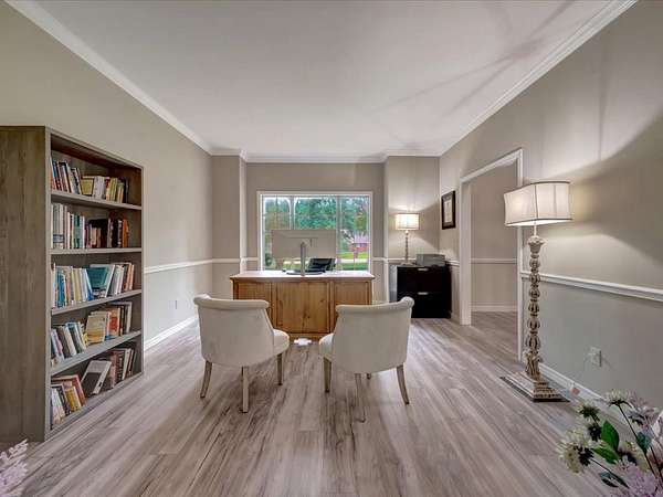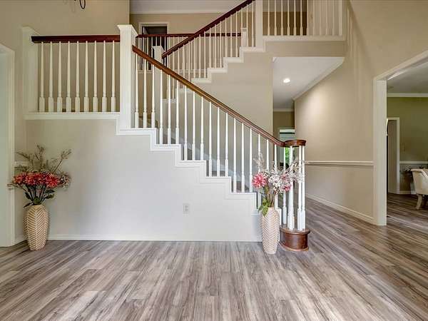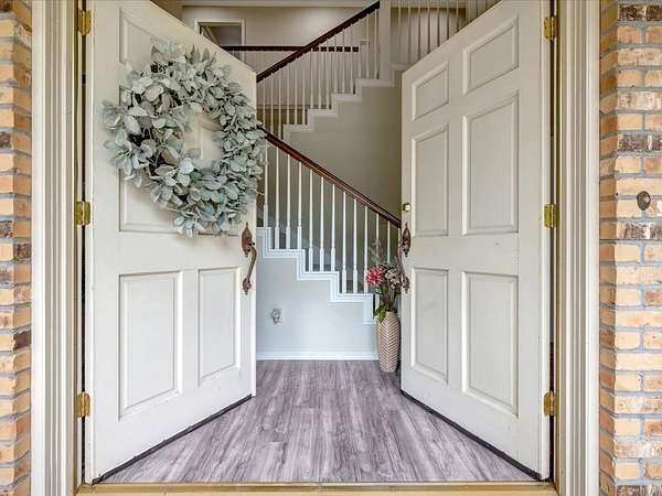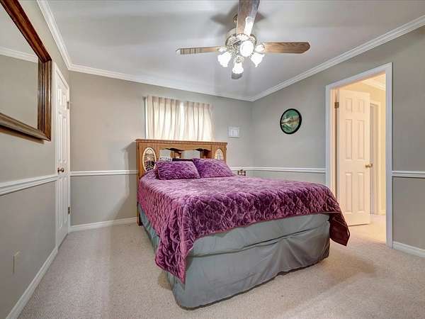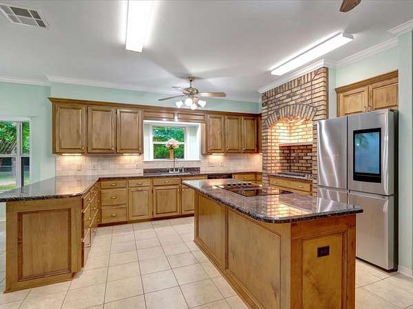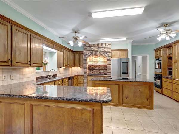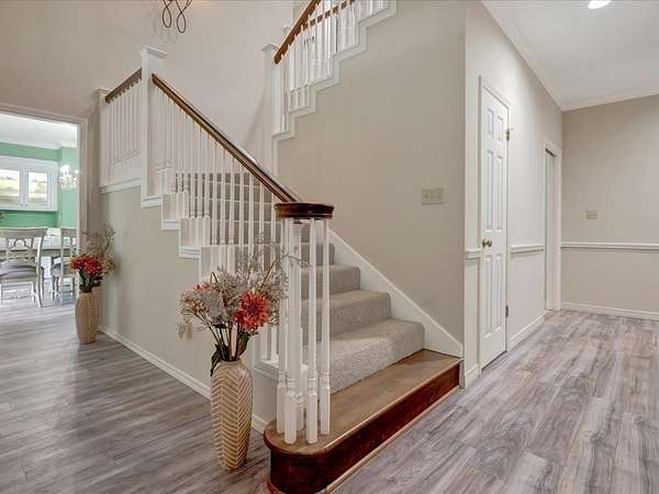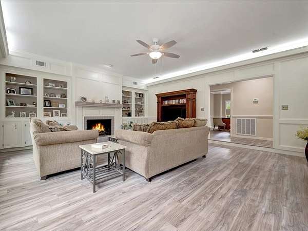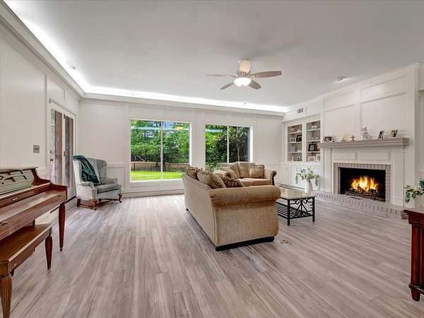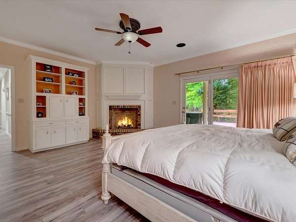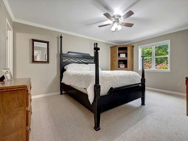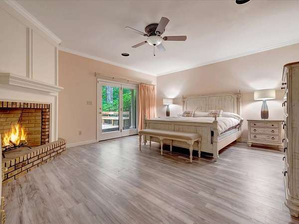 This stunning property, now available due to the sellers relocating for work, boasts 4 bedrooms and 3.5 bathrooms, offering an impressive 3,318 sqft of living space. Nestled on two lots for a total of 4.42 acres. You will be welcomed by soaring ceilings in the foyer, leading to a formal dining room and a dedicated office space. The sunken living room features large windows that frame views of the fenced backyard and beyond. Adjacent to the dining area, the kitchen is designed to entertain, complete with a gas range with a warming station, double ovens, and a marble-topped appliance work station. The main level features a peaceful primary suite, equipped with a fireplace and a private deck that opens to the backyard. Venture upstairs to discover three spacious bedrooms, two bathrooms, and two large storage rooms. The exterior is equally impressive, featuring a circular driveway, a back-facing two-car garage, and a fenced backyard perfect for entertaining.