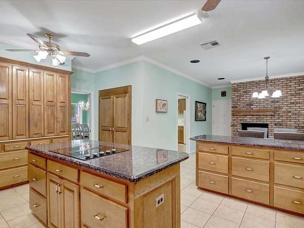 - Bookcases, Built-In Features, Ceiling Fan(s), China Cabinet, Dryer Connection-Electric, Gas Water Heater, Kitchen Island, Pantry, Primary-Lower Level, Smoke Detectors, Sunken Living Room, Walk-In Closet(s)