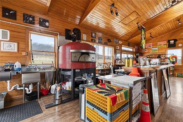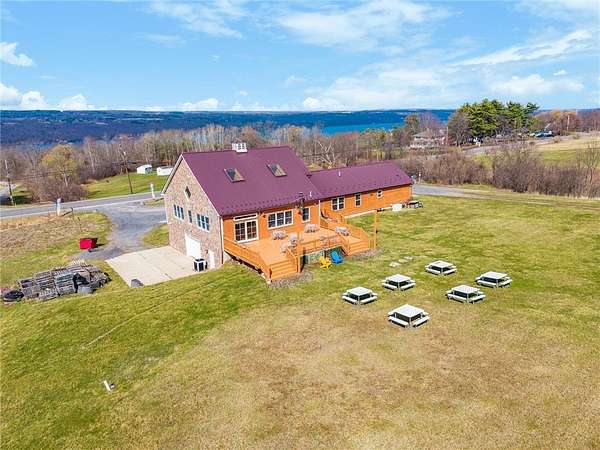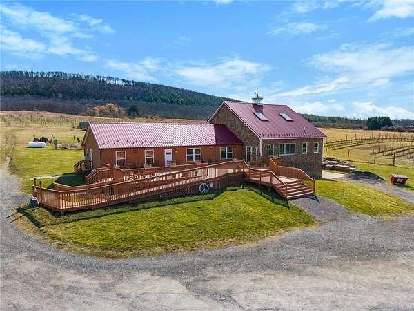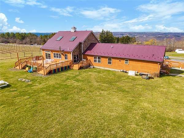 Set in the heart of the breathtaking Finger Lakes region, this exceptional 51-acre property offers a rare opportunity to own a versatile estate blending agriculture, hospitality, and lifestyle. Perfectly positioned along the renowned Seneca Lake Wine Trail, this location places you among some of the area's most sought-after destinations, drawing visitors year-round for world-class wine, scenery, and experiences. With 11 acres of established grapevines, the groundwork is already in place for a boutique vineyard operation or to expand an existing wine venture in one of New York's most celebrated wine regions. At the center of the property sits a thoughtfully designed all-purpose building currently operating as a wine tasting room, creating an inviting space to gather, entertain, and showcase your craft. A standout feature is the authentic Italian pizza oven, perfect for hosting events, enhancing the guest experience, or elevating a farm-to-table business concept. The building also offers a full basement, providing valuable additional space for storage, production, or future expansion. Complementing the commercial space is a well-appointed 2-bedroom, 2-bathroom apartment, offering comfortable on-site living-ideal for an owner-operator, staff housing, or even short-term rental potential. Adding to the property's efficiency and long-term value, owned solar helps keep overhead costs down, and the availability of municipal water provides added convenience and reliability. Enhancing the natural beauty of the setting, the property features a picturesque pond paired with stunning lake views, creating a serene backdrop for guests, events, or everyday enjoyment. The property is further enhanced by existing infrastructure to accommodate up to three small cabins or RV sites, opening the door for agritourism, vacation rentals, or expanded guest accommodations. Whether you're envisioning a vineyard retreat, a winery with lodging, or a unique event destination, the possibilities here are truly expansive.Surrounded by Finger Lakes scenery this one-of-a-kind property combines charm, functionality, and strong income potential in an unforgettable setting.