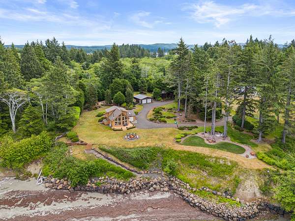 Fishing paradise in your front yard! Gorgeous cedar home with two parcels - over 6 acres of land and 243' of waterfront on Willapa Bay. Bulkhead, private steamer clam beds, large garage for boats and gear storage, RV parking, guest house for fishing friends, gated lane, and an abundance of wildlife. Panoramic views of the Bay and Pacific Ocean on the Pacific Flyway for waterfowl and shorebirds. Unmatched sunsets! Ten fish-filled rivers flow into Willapa Bay. Coho, Chinook, and chum salmon abound and searun cutthroat cruise the estuaries and oyster beds. Some of the best steelhead fishing in the state is nearby in the Nemah, Naselle, and Grays Rivers. The famous Buoy 10 salmon fishery on the Columbia River is a 40-minute drive as is Long Beach, a mecca for razor clams. Several freshwater lakes are nearby for rainbow trout fishing year round. Two saltwater boat ramps are a mile from the property providing easy access to Dungeness crab and fishing grounds throughout Willapa Bay as well as the Pacific Ocean. Eagles are regular visitors to the large spruce trees on the property. It is an exceptionally tranquil and quiet location for anyone seeking privacy, peace and closeness to nature. About a 2-hour drive from either Seattle or Portland metropolitan areas.