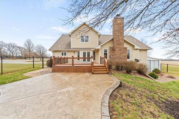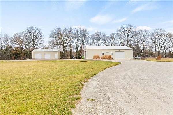 Enjoy peaceful country living just minutes from Baldwin City! This property spanning nearly 30-acres located 1 mile north of town offers wide open spaces, unmatched privacy, and plenty of room for gathering and entertaining. The home features 3 bedrooms and 3.5 bathrooms including a main level primary suite. The inviting main floor is centered around a large brick fireplace and flows into the kitchen and dining area, perfect for hosting and entertaining. The kitchen includes custom cabinets, granite countertops and hardwood floors with granite throughout the home. Upstairs offers secondary bedrooms with walk-in closets and a shared full bathroom. The finished basement adds extra living space with a non-conforming bedroom, office, additional rec room with a full bath. Basement also has walk-out greenhouse that leads to the back yard. Outside, enjoy a fenced backyard and patio plus a heated shop and additional machine shed-ideal for hobbies and storage. Experience the freedom of country living with the convenience of being close to Baldwin City.