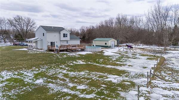 5 Acres in Hilton - Don't Miss This Opportunity! Welcome to this well-kept 2001 home located in the sought-after Hilton School District. Set on 5 acres, this property offers the space and features you've been looking for. The home includes 3 bedrooms and 2.5 bathrooms, with a convenient second-floor laundry area. All bedrooms have been recently painted and feature newer flooring and ceiling fans. You'll stay comfortable year-round with forced air heating and central air. The primary bedroom features a walk-in closet and a private on-suite bath with a jetted tub. Enjoy outdoor living on the deck overlooking the above-ground pool-perfect for summer gatherings. In the winter months, relax by the gas fireplace in the living room. This property is ideal for horse enthusiasts, featuring a outdoor riding arena (120x80), a barn with attached pasture for easy access, two 12x12 stalls with Priefert Premier stall fronts, a tack room, and peaceful views of your horses right from the kitchen. Delayed negotiations until Thursday, 3/26 at 5 PM.