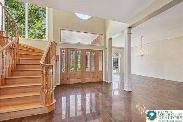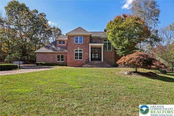 The owner has successfully appealed the property taxes - they've been reduced by $5,918, which will be reflected in the 2026 property tax bill. Experience refined luxury and serene privacy in this exceptional all-brick, gated Colonial estate nestled on over 2 acres along the prestigious Great Bear Golf Club. Spanning over 7,500 sq ft, this 5-bedroom, 6-bath residence combines timeless architecture and modern comfort. Unlike homes with a brick facade, this estate is constructed entirely of brick, with detailed coining at the corners and a full-brick driveway enhancing its commanding curb appeal. Inside, solid wood interior doors add warmth and quality throughout. From the grand foyer, step into a great room with cathedral ceilings, stately columns, and a dramatic loft-style catwalk-perfect for entertaining. The formal dining room offers an elegant space for gatherings, while the gourmet kitchen features luxury appliances, abundant cabinetry, and sweeping golf course views. The first-floor primary suite offers a private retreat with a spa-inspired bath and whirlpool tub. Upstairs, four bedrooms and a gaming lounge provide comfort and flexibility. The walk-out lower level includes a recreation room and custom-built library. Enjoy a park-like backyard with tranquil golf course views. Just 10 minutes to downtown Stroudsburg and East Stroudsburg University, 60 minutes to Scranton and the Lehigh Valley, and only 90 minutes from Manhattan.