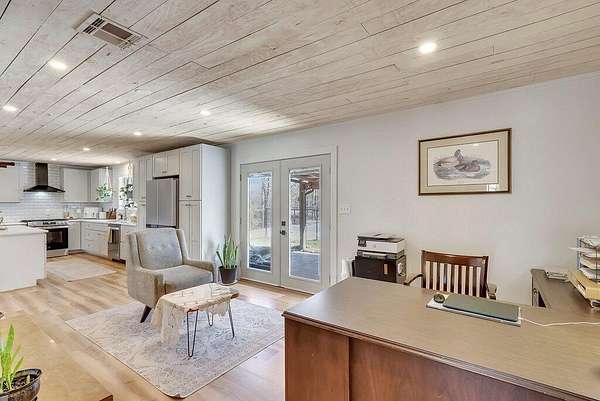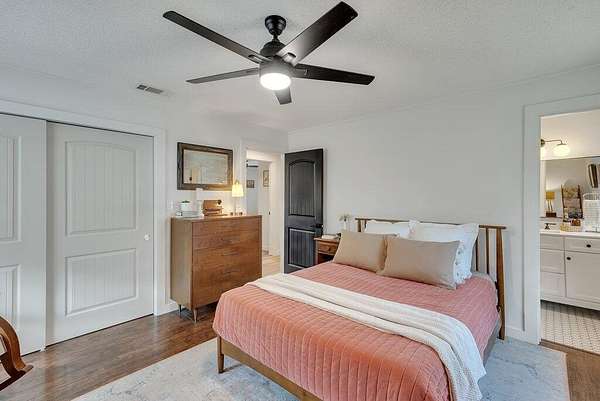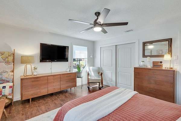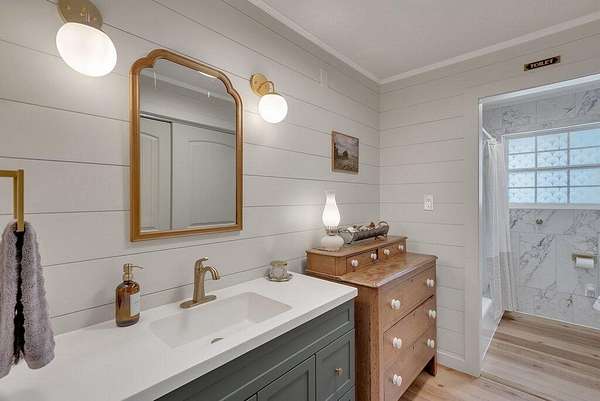 - Bathroom Mirror(s), Ceiling Fan(s), Crown Molding, Eat-In Kitchen, High Speed Internet, Kitchen Island, Open Floorplan, Primary Downstairs, Stone Counters, Walk-In Shower