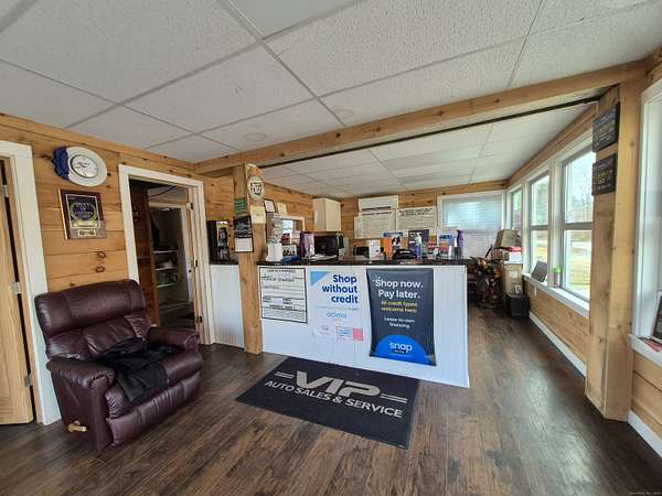 Prime Commercial Property on Route 6 - 4.11 Acres in Hampton, CT. Exceptional business opportunity on highly traveled Route 6 in Hampton. Currently operating as a used auto dealership and repair facility, this versatile 4.11-acre Business-zoned property offers a wide range of permitted uses, including retail, gas pumps, service operations, and more. The site features a 3-bay garage equipped with lifts, ideal for automotive, repair, or light industrial uses. An office building with an on-site apartment provides convenient workspace plus additional rental or owner-occupancy flexibility. Excellent visibility, strong road frontage, and easy access make this an ideal location for a growing or established business. Additional site advantages may include gas pump capability, potential for retail services, and an electric vehicle charging station already installed-perfect for modernizing your business footprint or expanding into future-focused services. A rare chance to own a highly adaptable commercial property on a major Connecticut corridor. Bring your vision and maximize the potential of this standout Route 6 location.