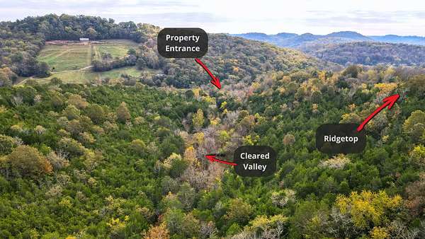 Escape to the quiet hills of Middle Tennessee with this 23.99 acre surveyed tract! With a natural mix of wooded ridge, rolling terrain, and a cleared valley, this property offers a great foundation for a homestead, hunting retreat, or private getaway. The cleared valley provides multiple potential build sites providing seclusion, while the ridge above with some clearing could offer elevated views of the surrounding hilltops and valleys. A gravel driveway winds through the property to the cleared valley where you'll find utility improvements already in place, including a 200 amp electric service panel with existing with 120V outlets, RV hookup, and operational well. You'll also find a 10x10 storage shed with water and washer/dryer hookups, ideal for use during future development or weekend stays, along with an old barn. A second capped well is also located near the main entrance.